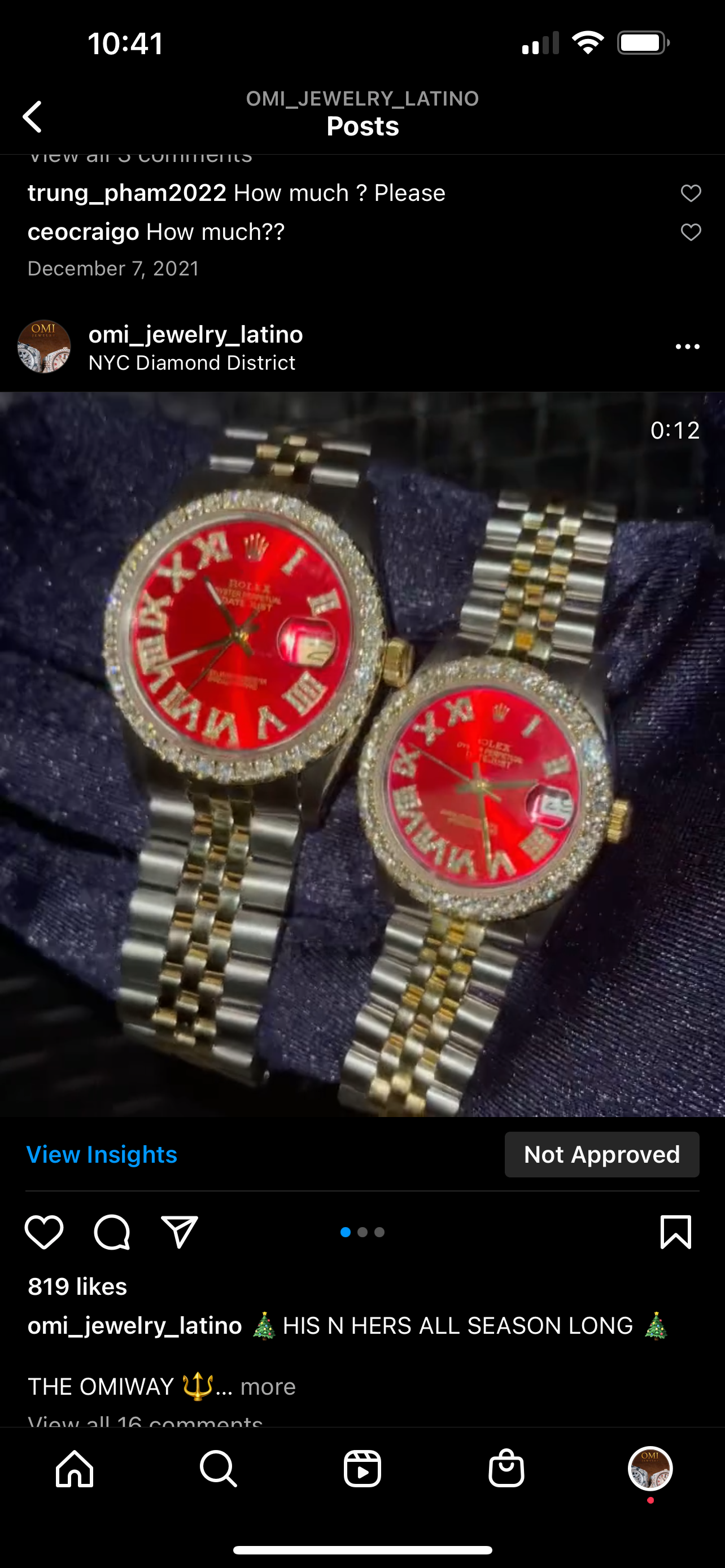 All items sold by OMI Jewelry are guaranteed 100% authentic. OMI Jewelry has not and will not sell anything that is fake or counterfeit. All watches and jewelry are inspected for authenticity, and to ensure the watch movements work properly, and the stones are not loose. Any modifications made to the watches, such as, but not limited to, the addition of diamonds, changes to the bezel, dial and/or bracelet, will be clearly stated in the listing as custom or aftermarket. All jewelry items sold are new.