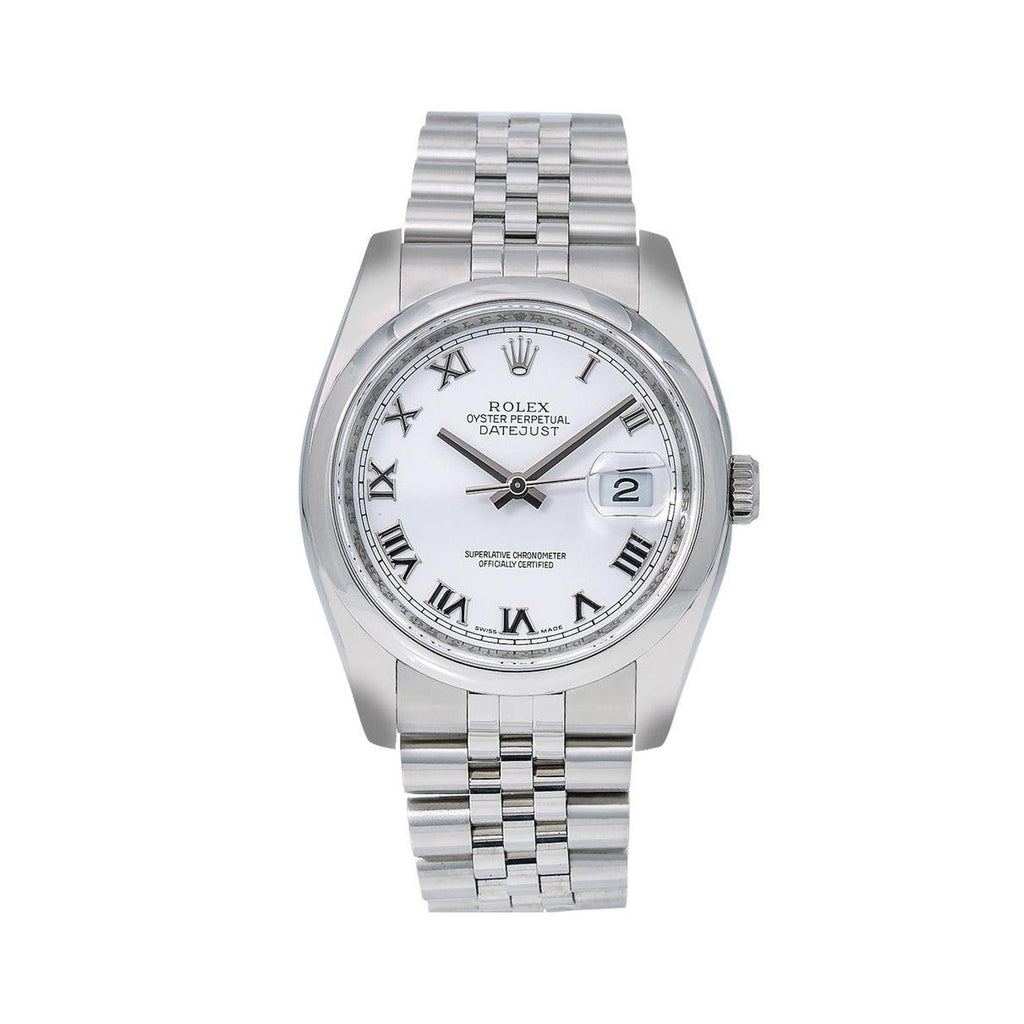 Rolex Datejust 36MM 116200 White Roman Dial Smooth Bezel Stainless Steel Jubilee Bracelet
