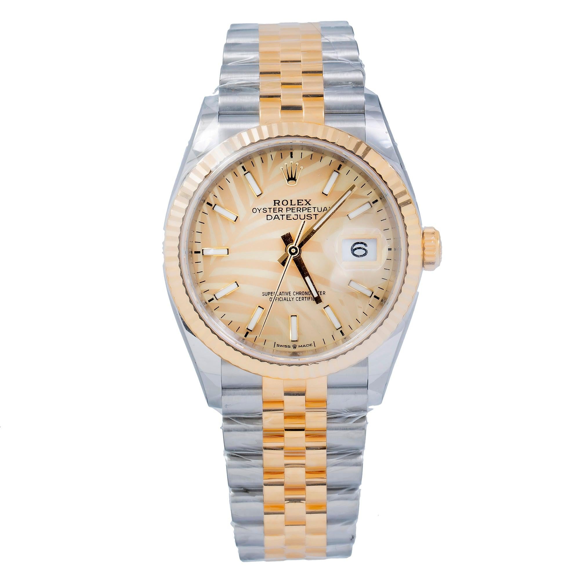 Rolex Datejust 36MM 126233 Champagne Palm Dial Fluted Bezel Two Tone Yellow Gold Jubilee Bracelet
