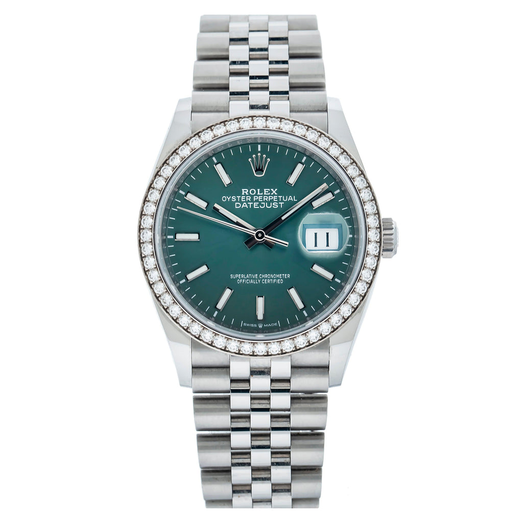 Rolex Datejust 36MM 126284RBR Green Dial Diamond Bezel Stainless Steel Jubilee Bracelet