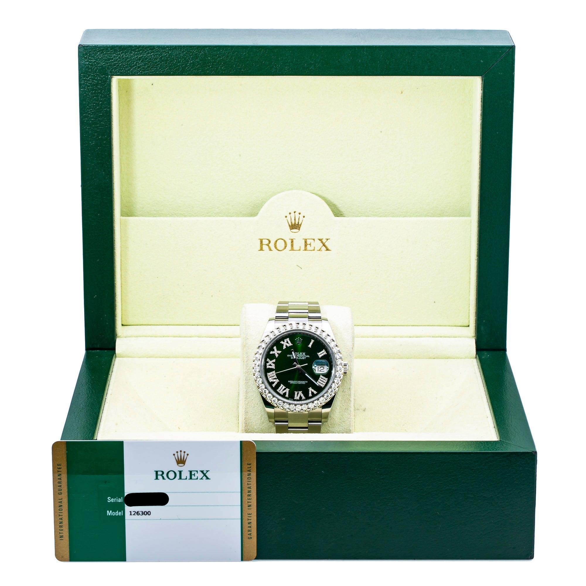 Rolex Datejust 41MM 126300 Green Roman Diamond Dial Diamond Bezel Stainless Steel Oyster Bracelet