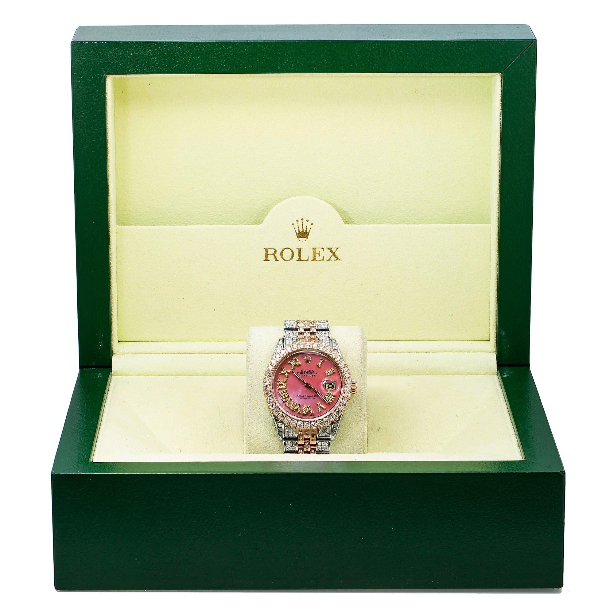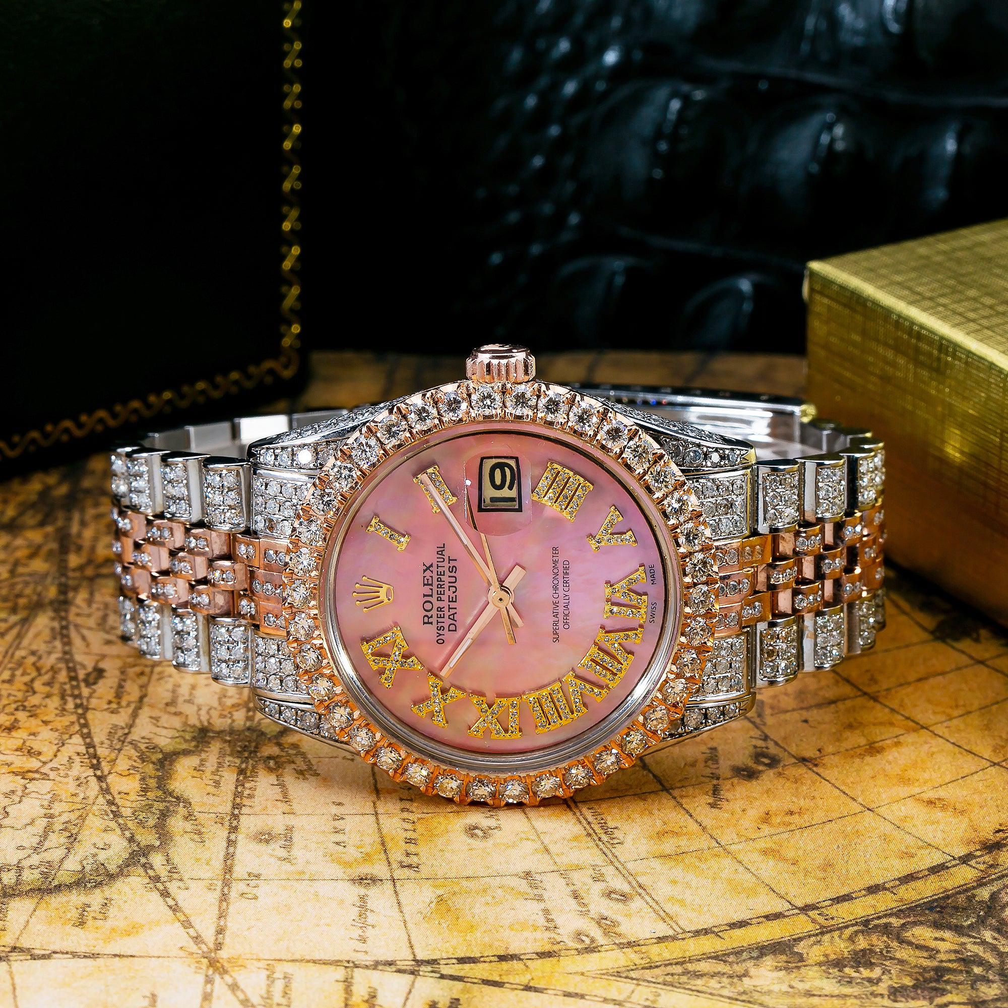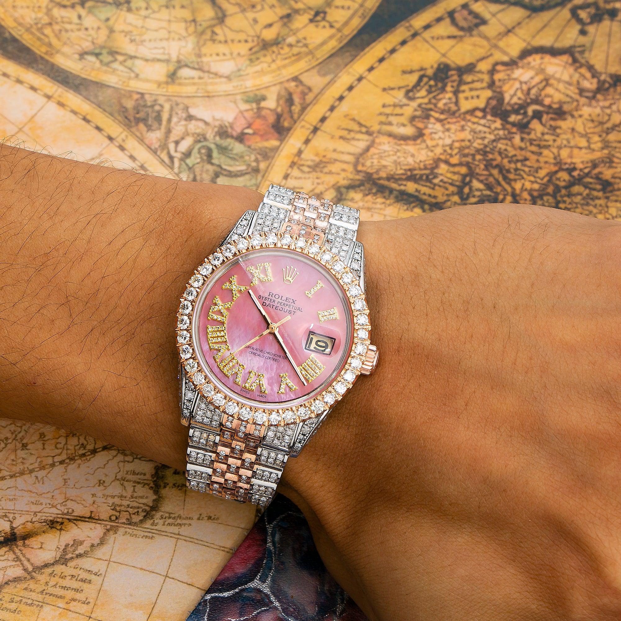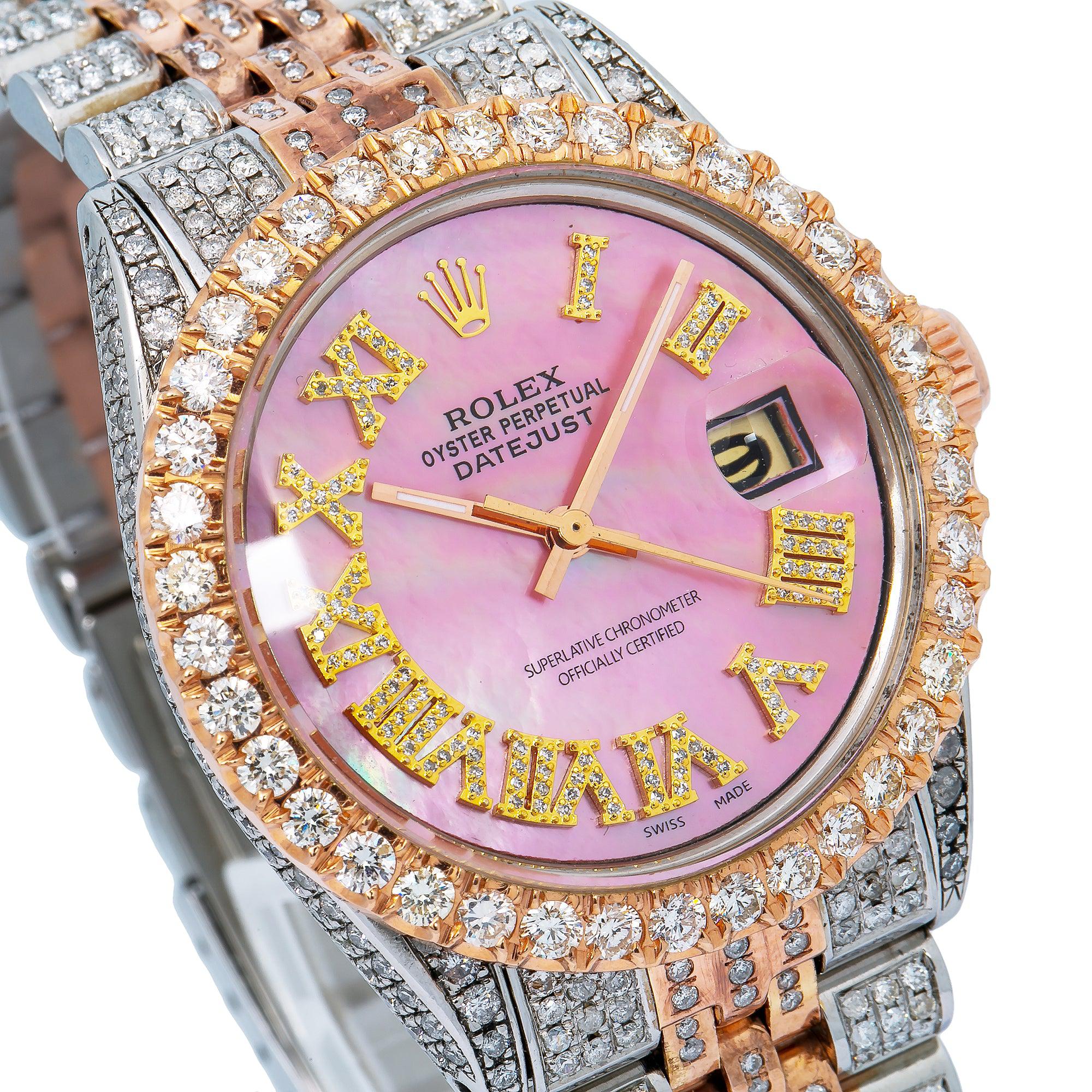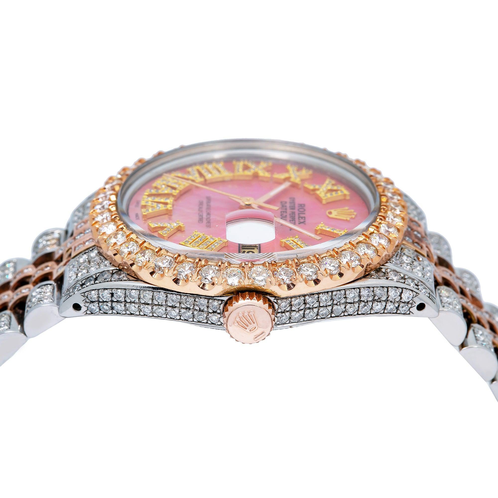 Rolex Datejust 36MM 1601 Pink Mother of Pearl Roman Diamond Dial Diamond Bezel Two Tone Rose Gold Full Diamond Jubilee Bracelet