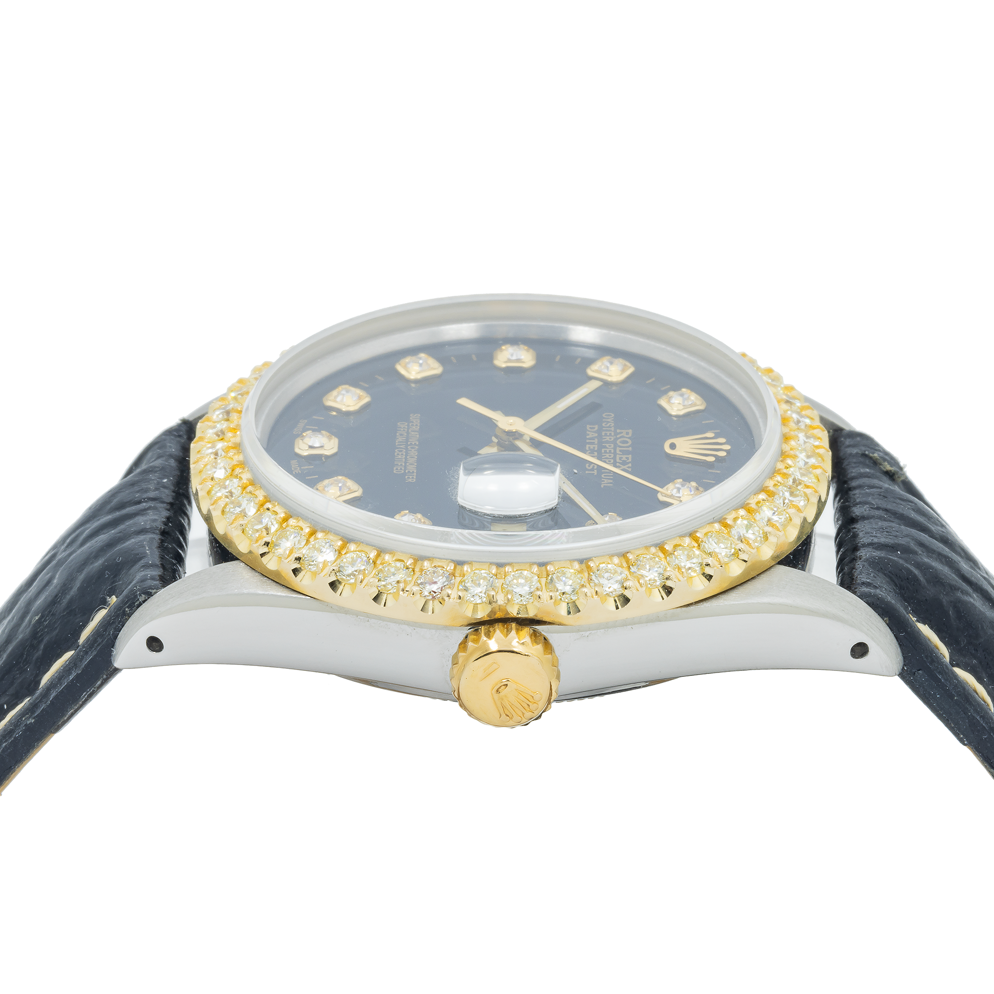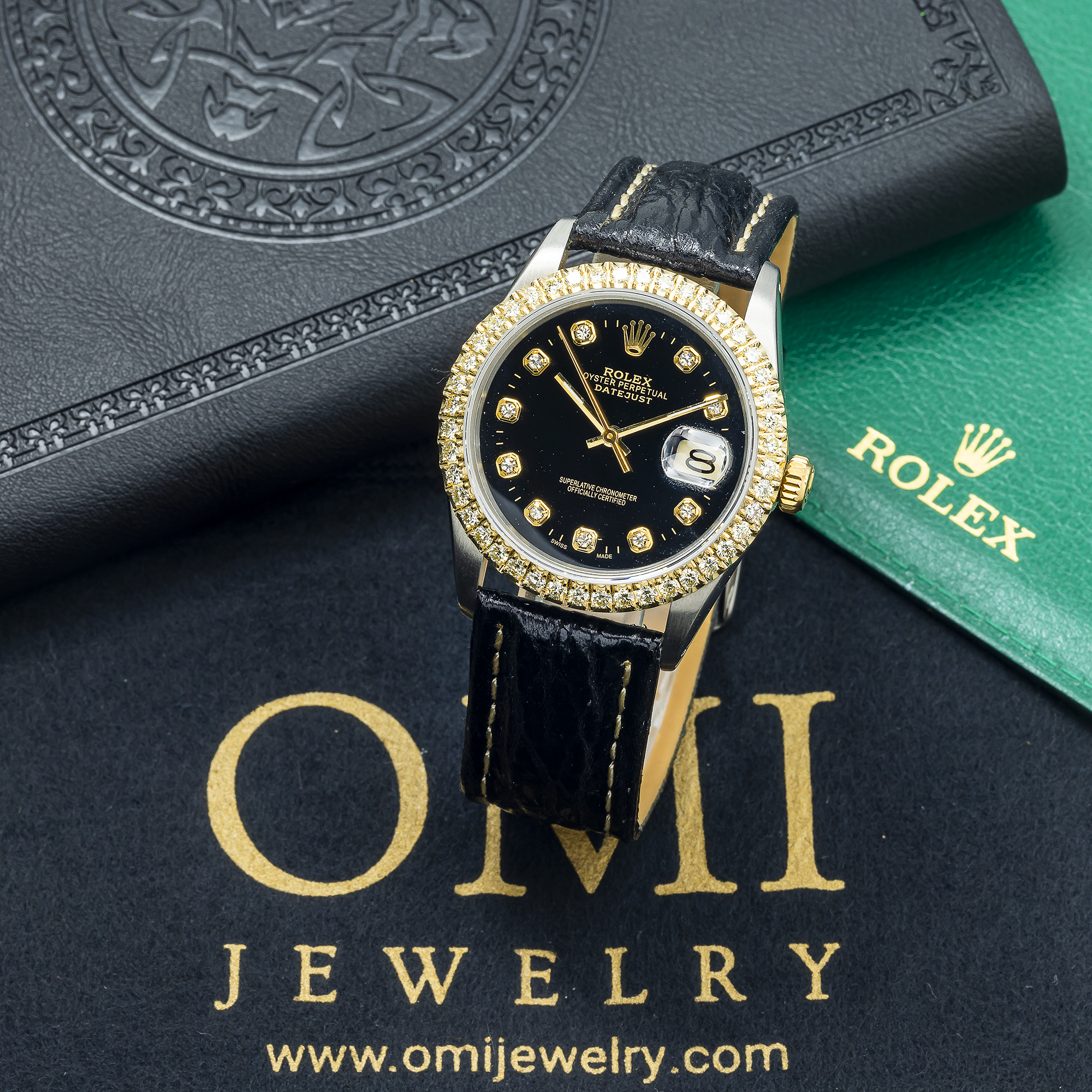 Rolex Datejust 36MM 16013 Black Diamond Dial Diamond Bezel Black Leather Strap