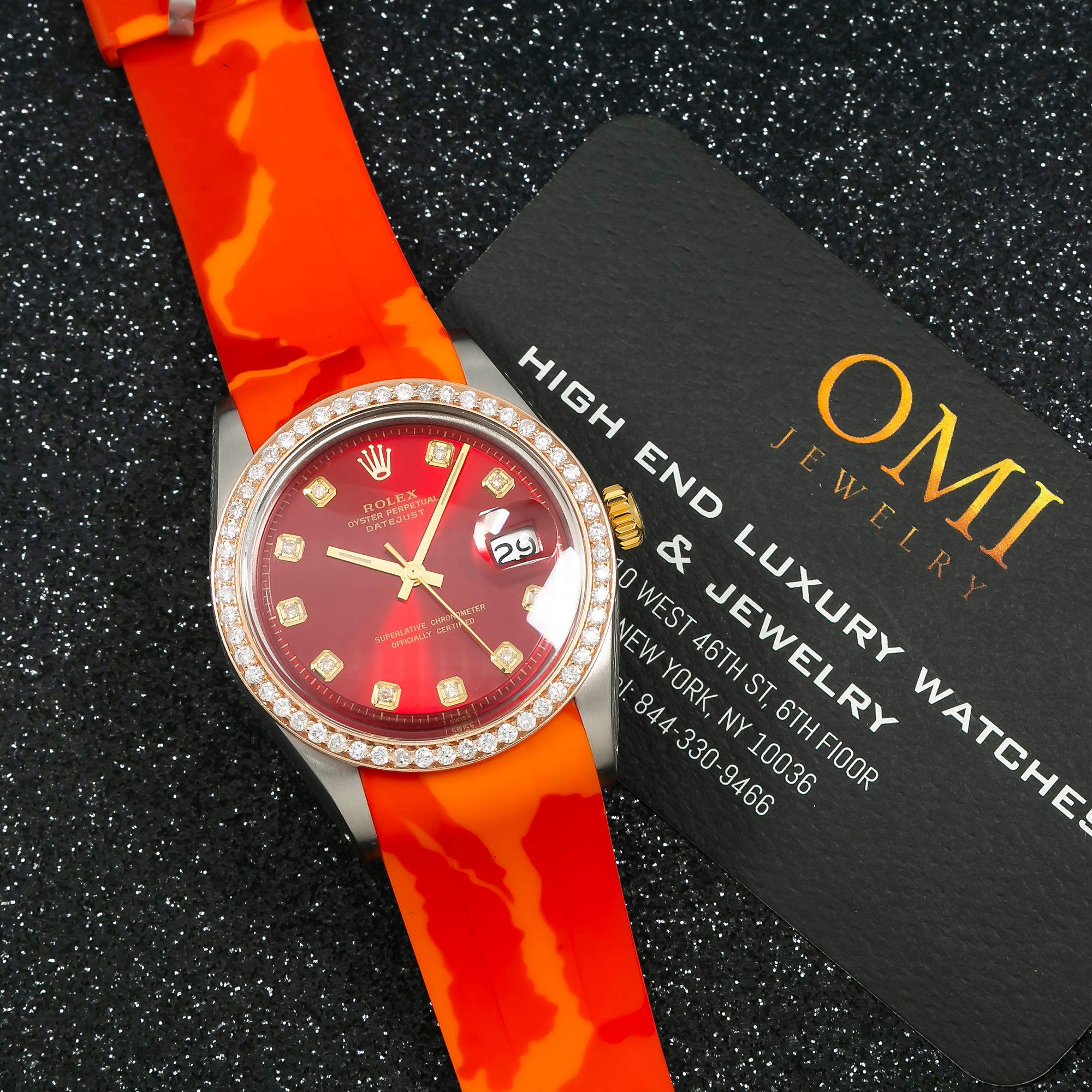 Rolex Datejust 36MM 1601 Red Diamond Dial Diamond Bezel Red Camo Rubber Strap