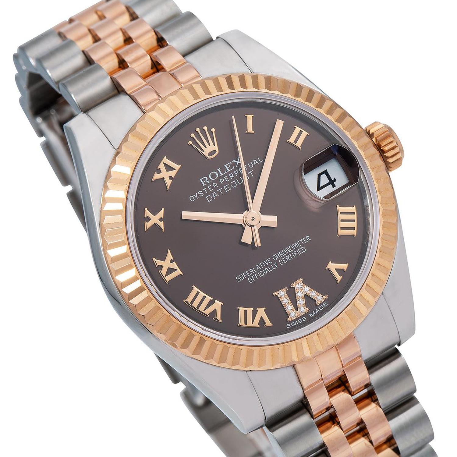 Rolex Datejust 31MM 178271 Chocolate Diamond Dial Fluted Bezel Two Tone Rose Gold Jubilee Bracelet