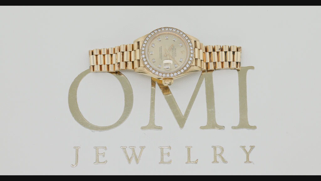 Rolex Datejust 26MM 69178 Champagne Diamond Dial Diamond Bezel 18K Yellow Gold President Bracelet