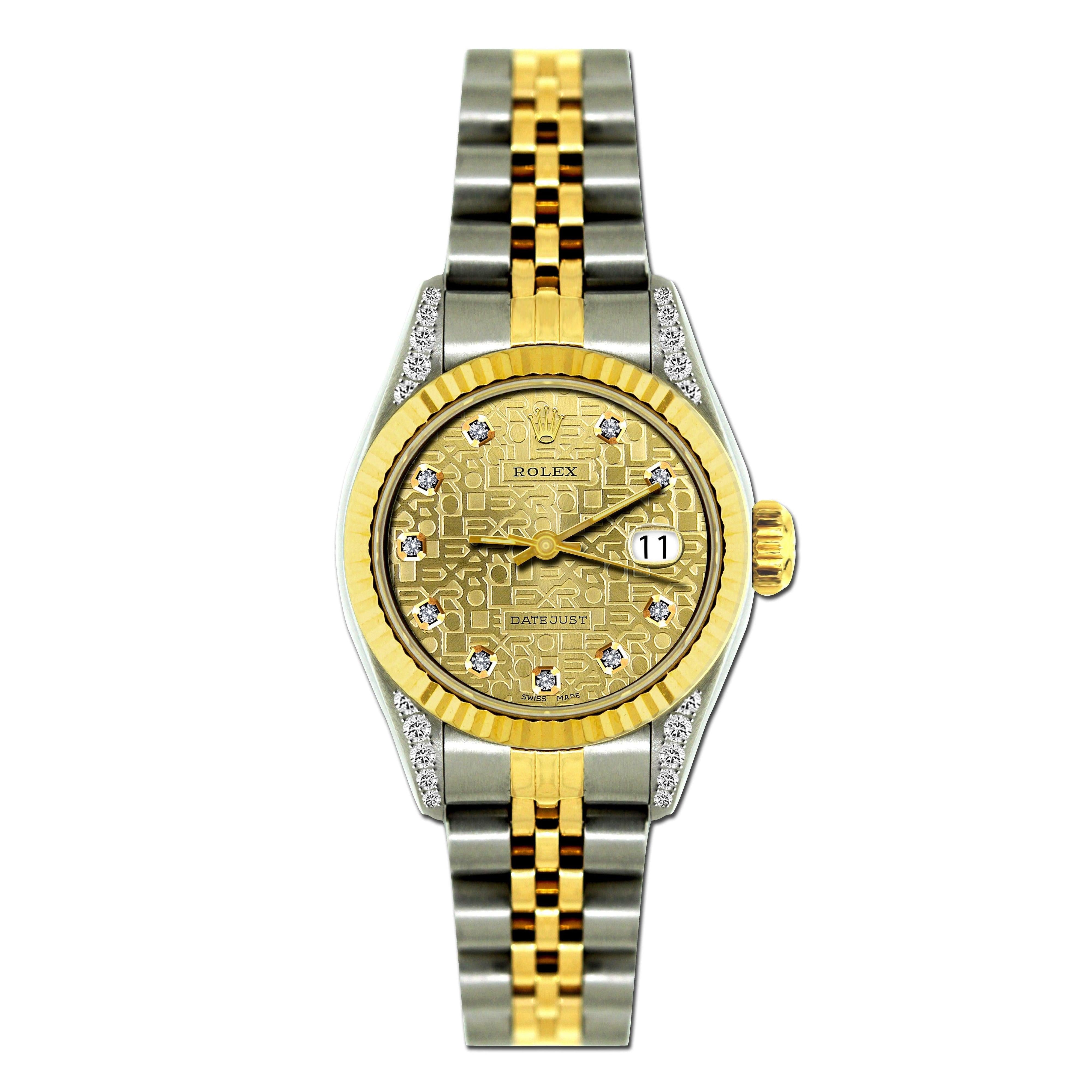 Rolex Datejust 26MM 6917 Champagne Pattern Diamond Dial Fluted Bezel Two Tone Yellow Gold Jubilee Bracelet