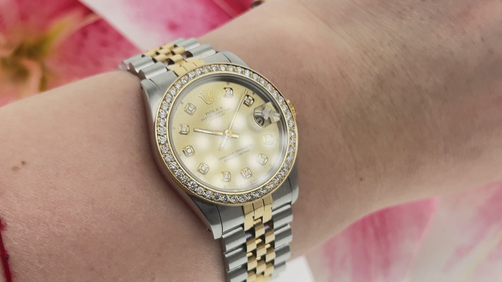 Rolex Datejust 31MM 68273 Champagne Diamond Dial Diamond Bezel Two Tone Yellow Gold Jubilee Bracelet 1.05ct