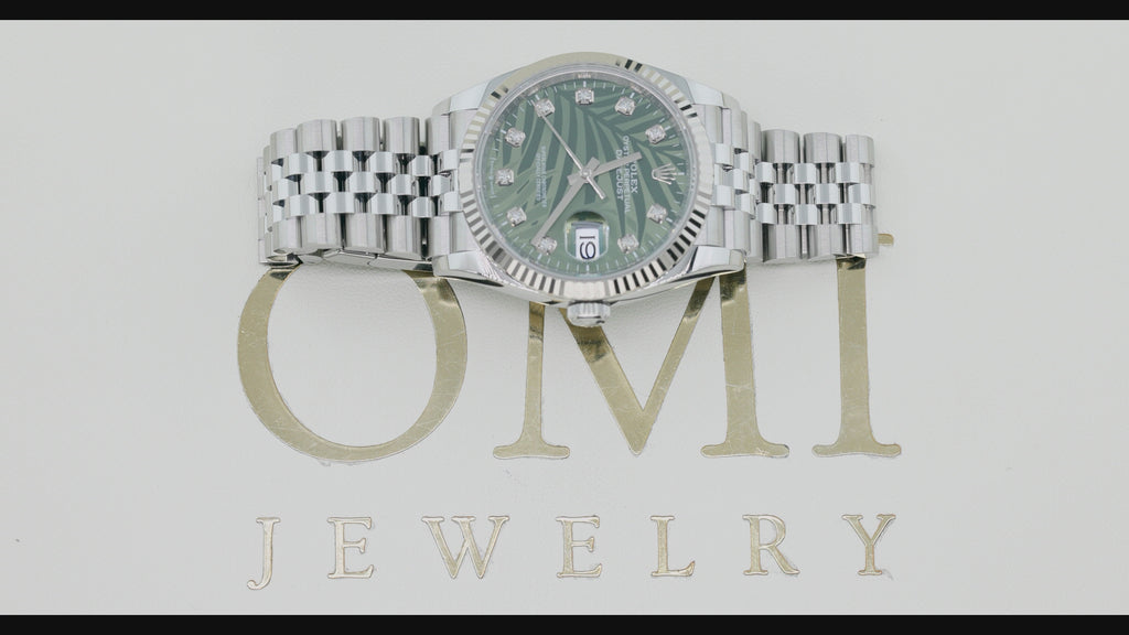 Rolex Datejust 36MM 126234 Green Palm Diamond Dial Fluted Bezel Stainless Steel Jubilee Bracelet
