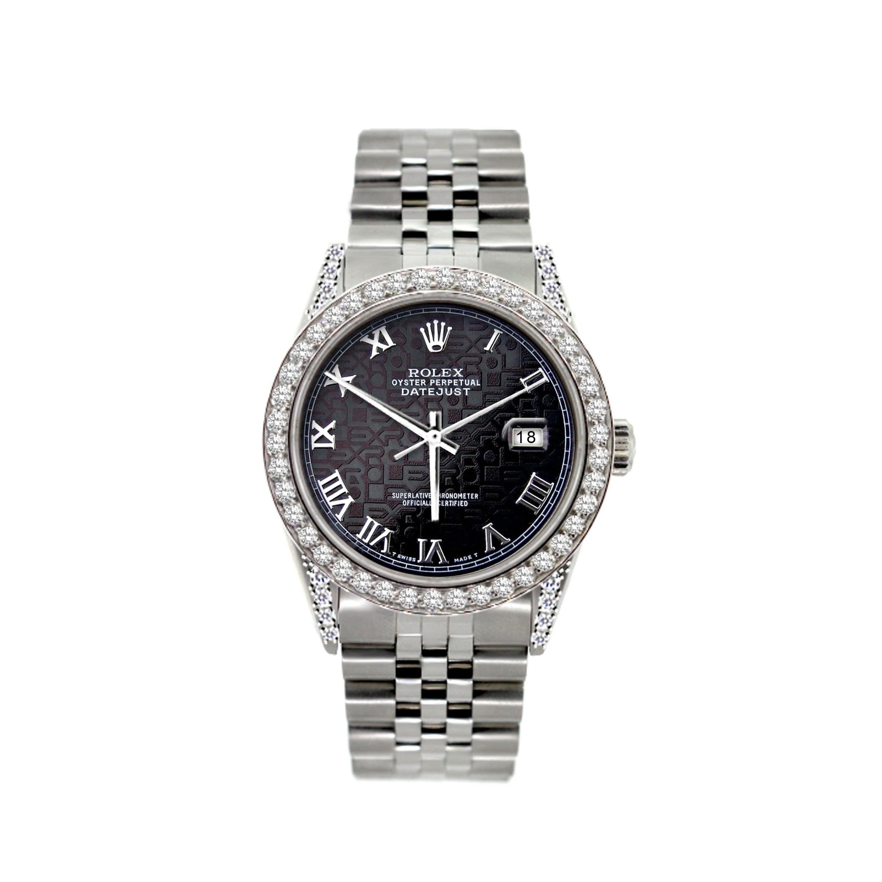 Rolex Datejust 36MM 16200 Black Pattern Diamond Dial Diamond Bezel Stainless Steel Jubilee Bracelet 1.2ct