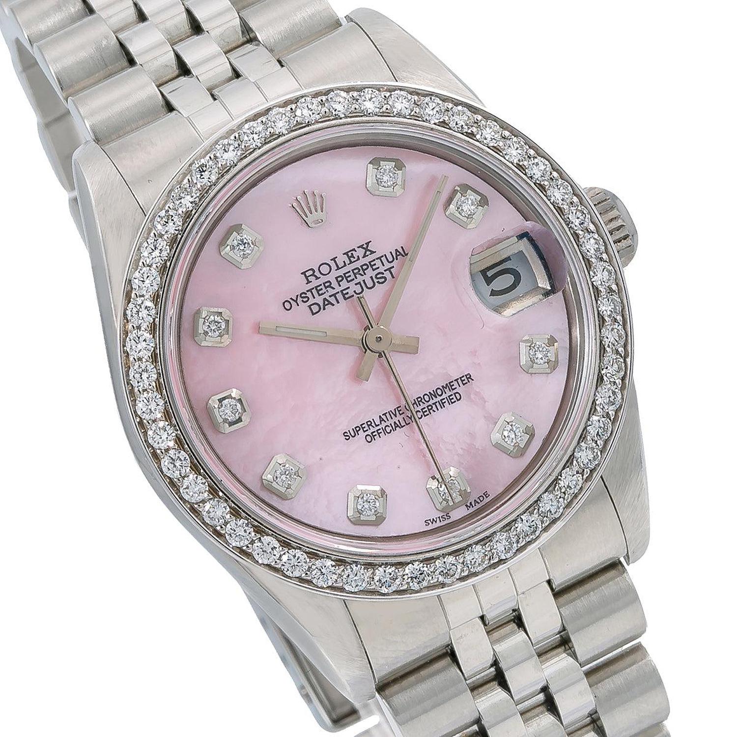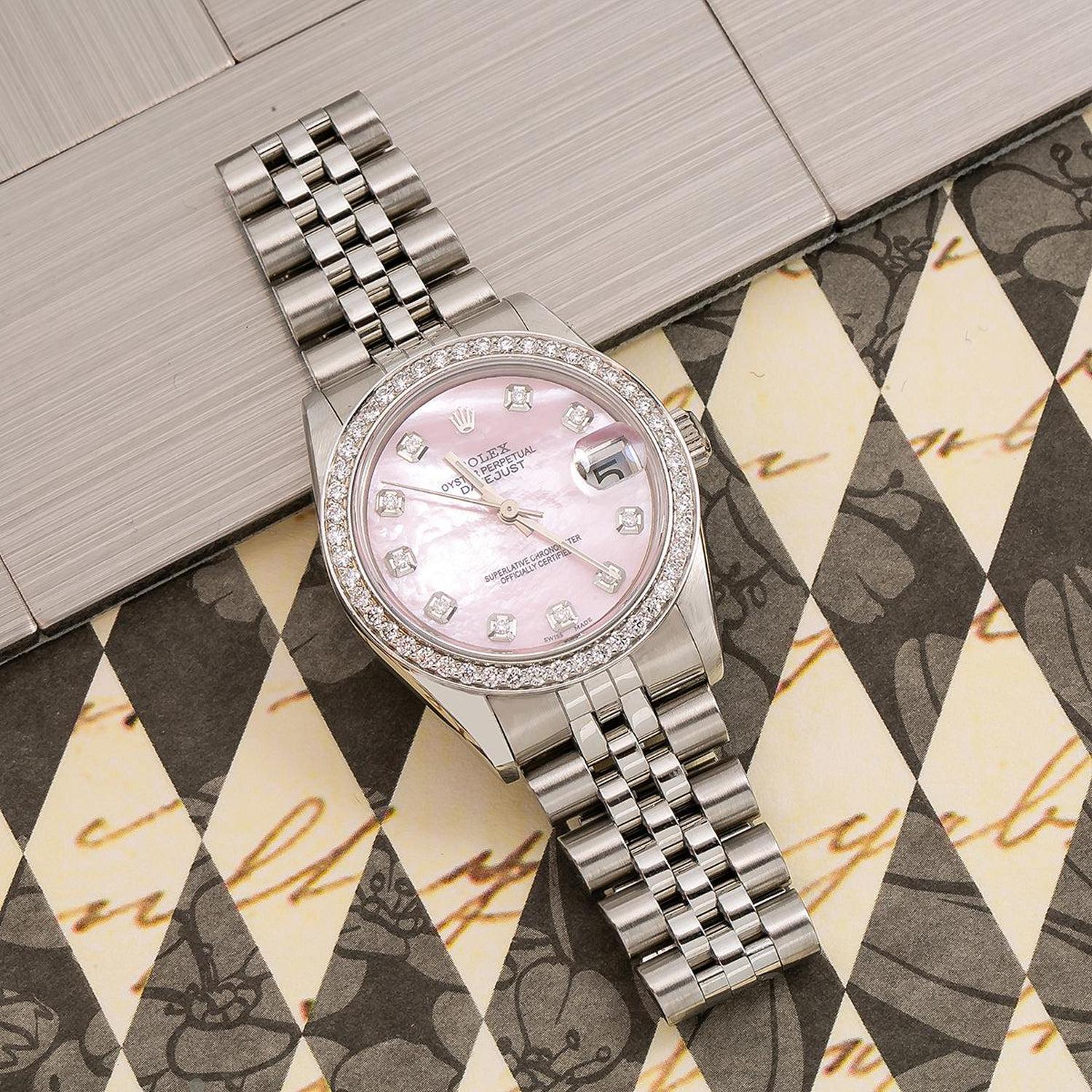 Rolex Datejust 31MM 78274 Pink Mother of Pearl Diamond Dial Diamond Bezel Stainless Steel Jubilee Bracelet 1.05ct