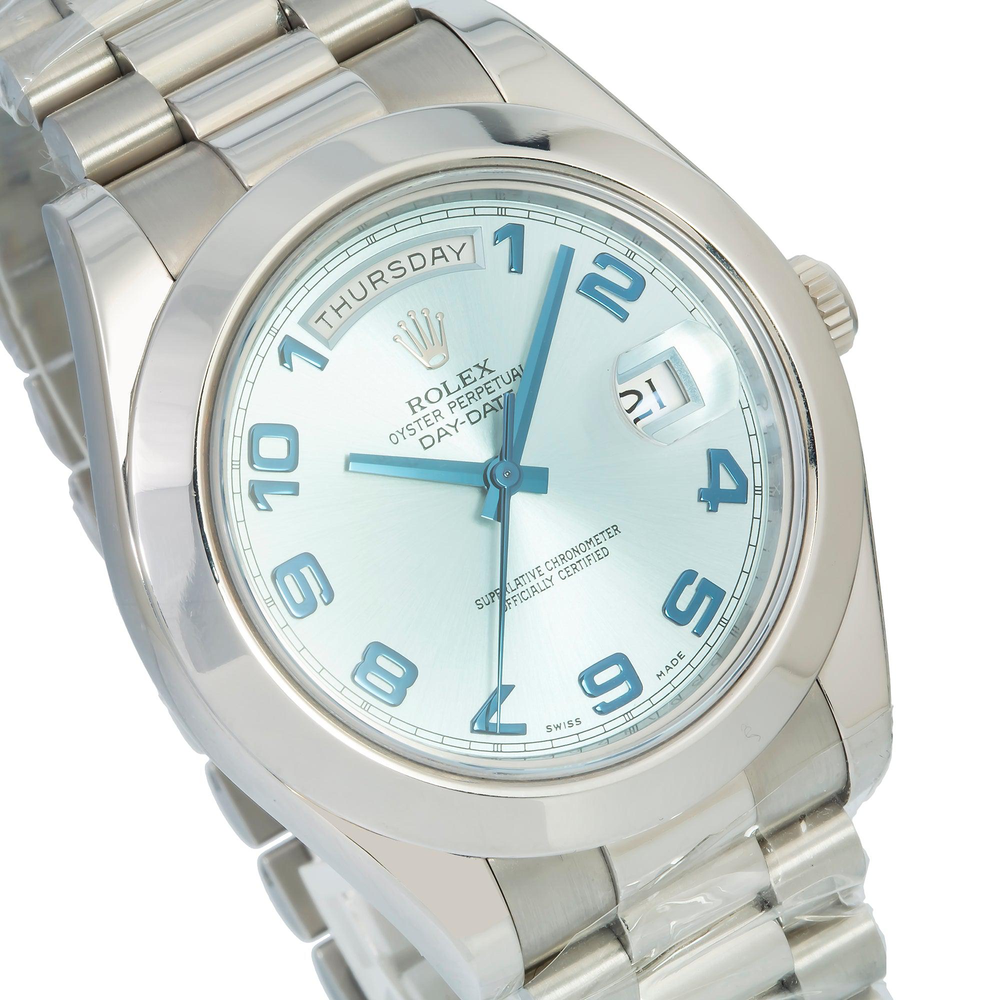 Rolex Day-Date II 41MM 218206 Ice Blue Arabic Dial Platinum Smooth Bezel Platinum President Bracelet