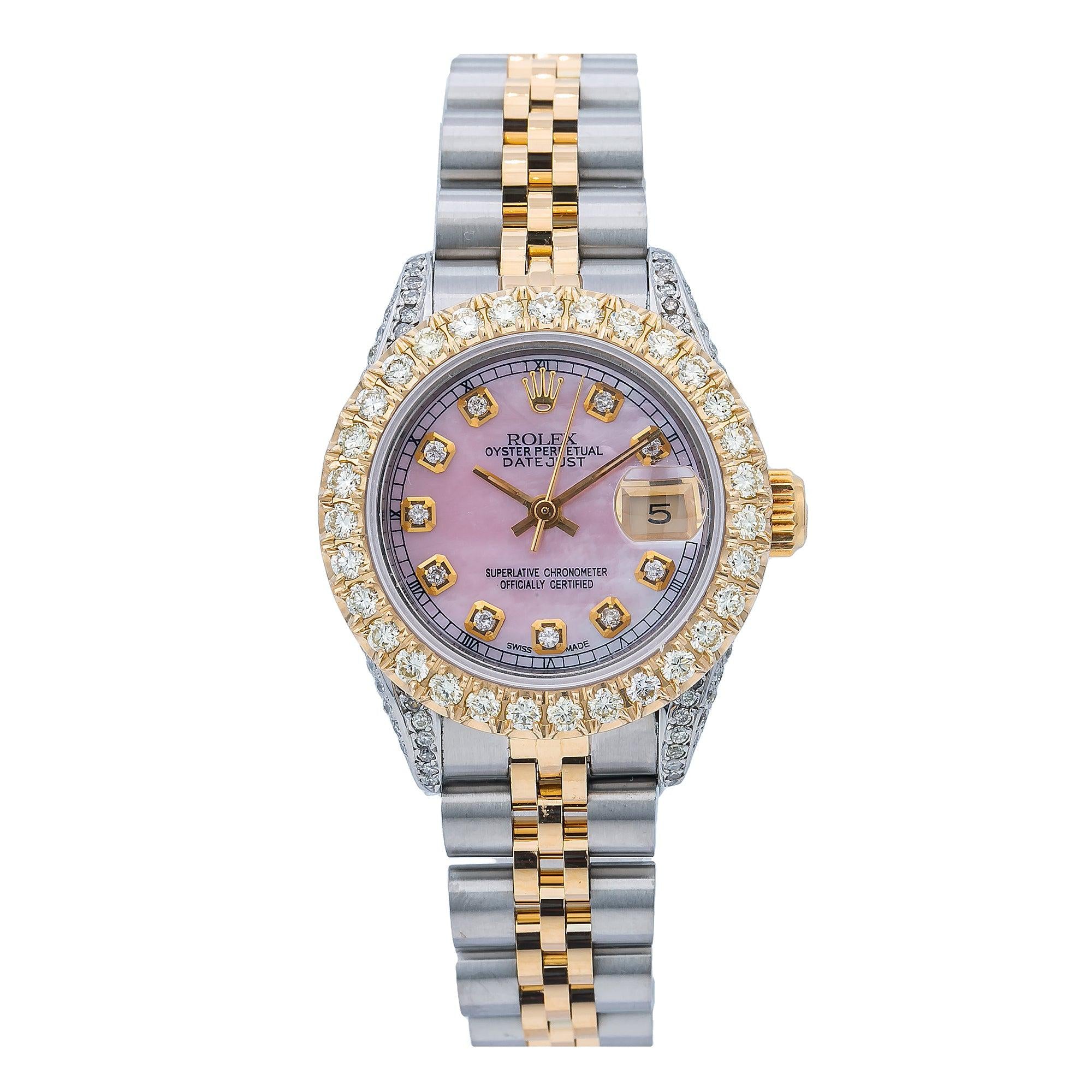 Rolex Datejust 26MM 69173 Pink Mother of Pearl Diamond Dial Diamond Bezel Two Tone Yellow Gold Jubilee Bracelet 2.75ct