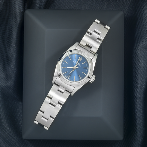 Rolex Oyster Perpetual 26MM 76080 Blue Dial Smooth Bezel Stainless Steel Oyster Bracelet