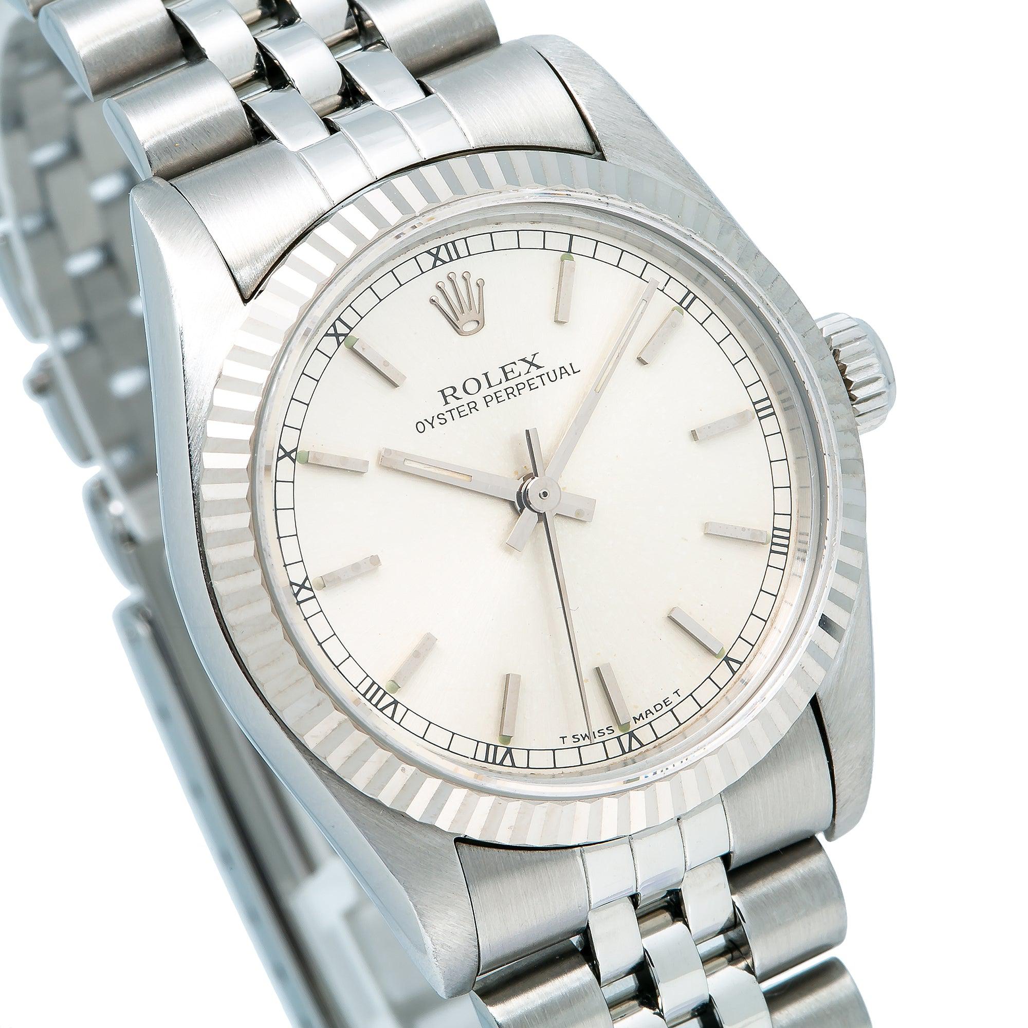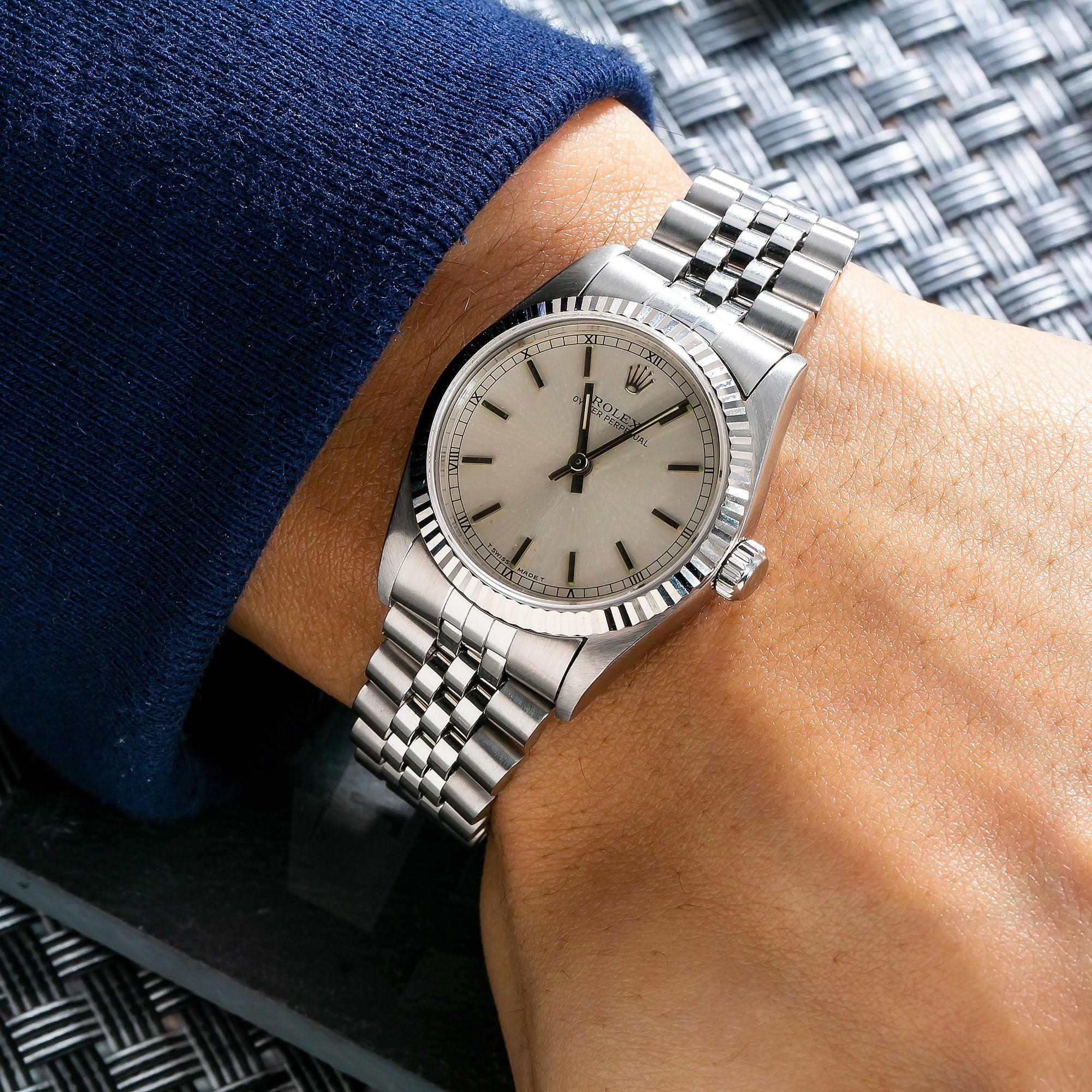 Rolex Oyster Perpetual 31MM 67514 Silver Dial Fluted Bezel Stainless Steel Jubilee Bracelet