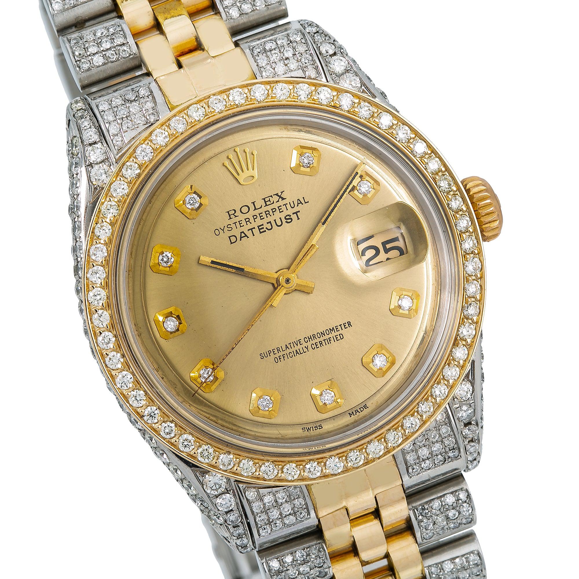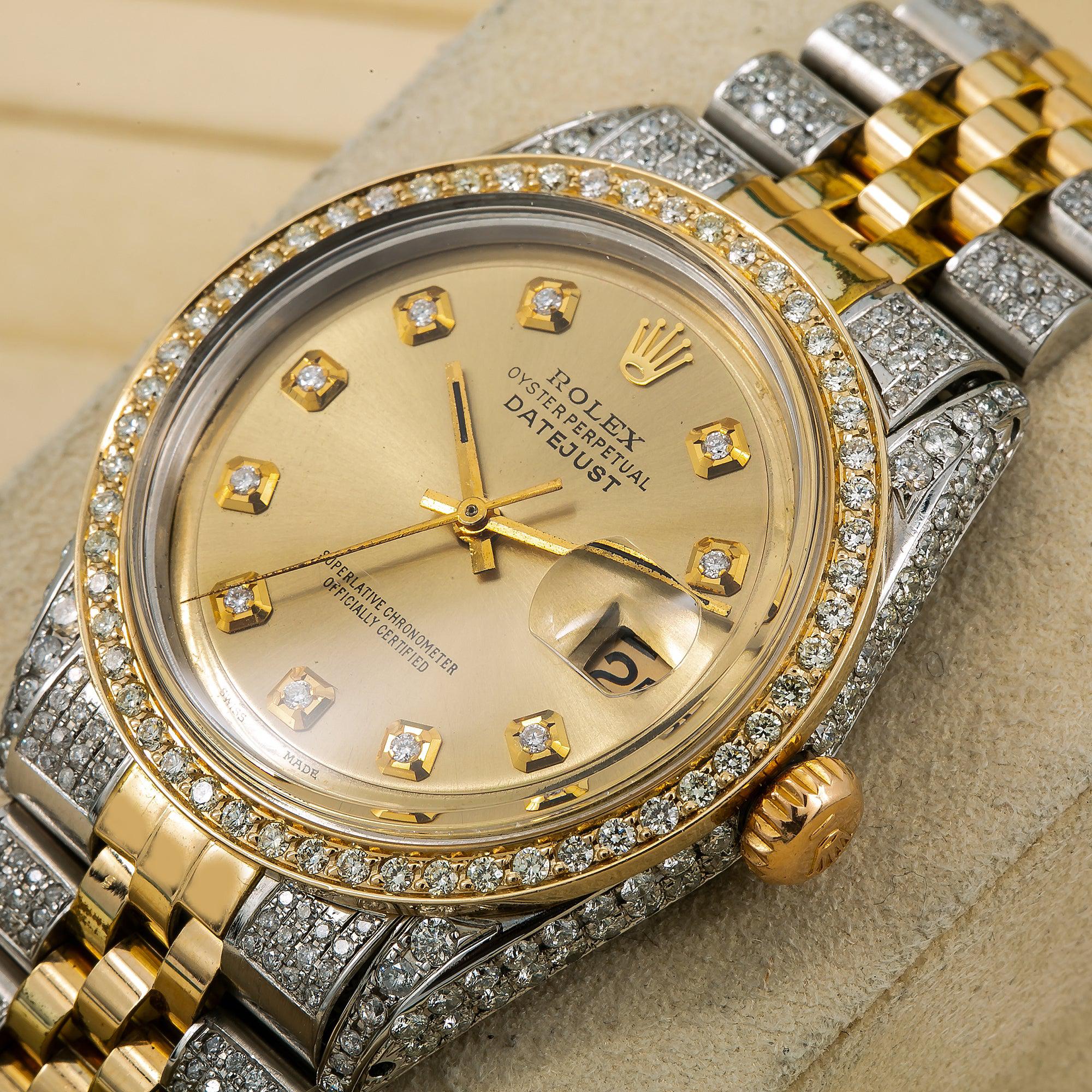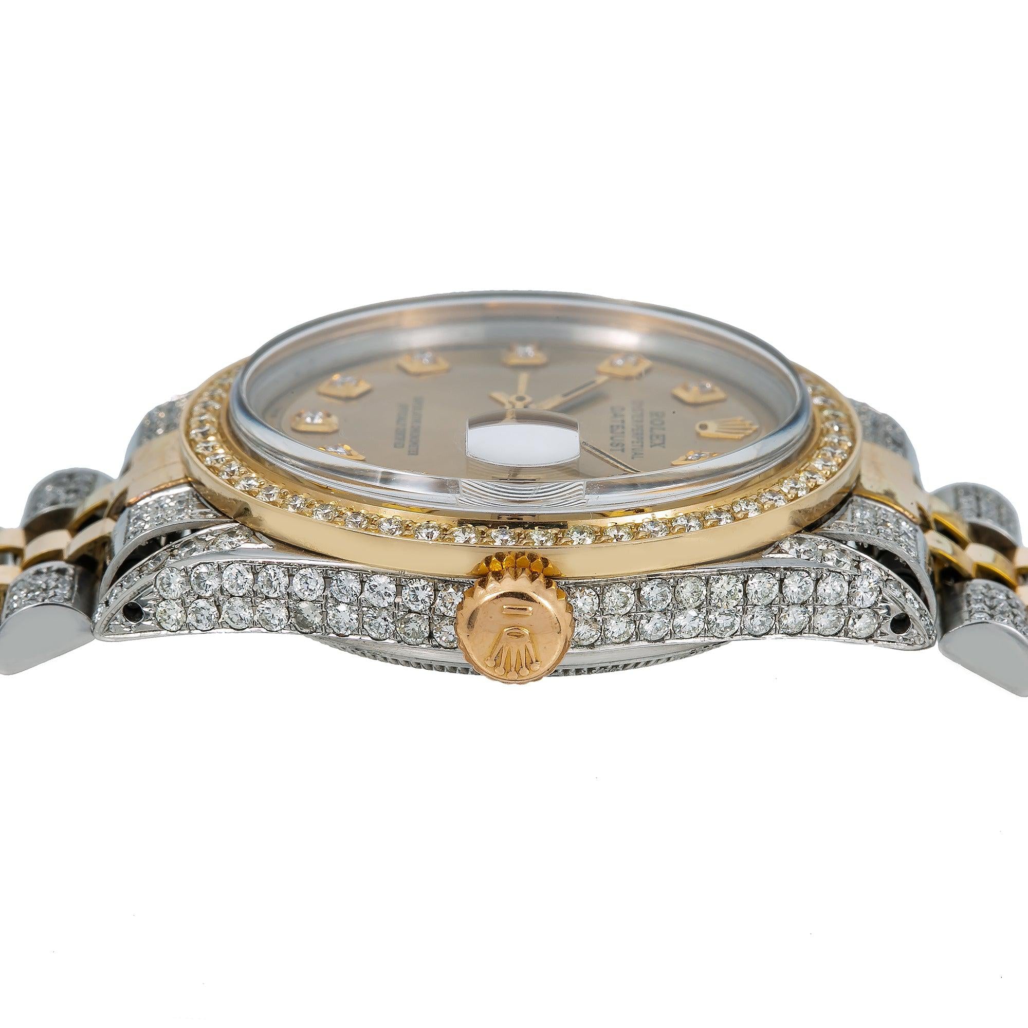 Rolex Datejust 36MM 1601 Champagne Diamond Dial Diamond Bezel Two Tone Yellow Gold Semi Diamond Jubilee Bracelet 5ct