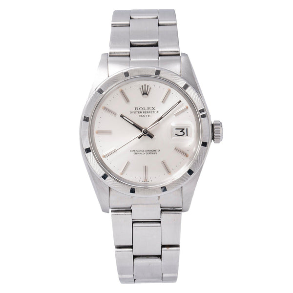 Rolex Date 34MM 1501 Silver Dial Engine Turned Bezel Stainless Steel Oyster Bracelet