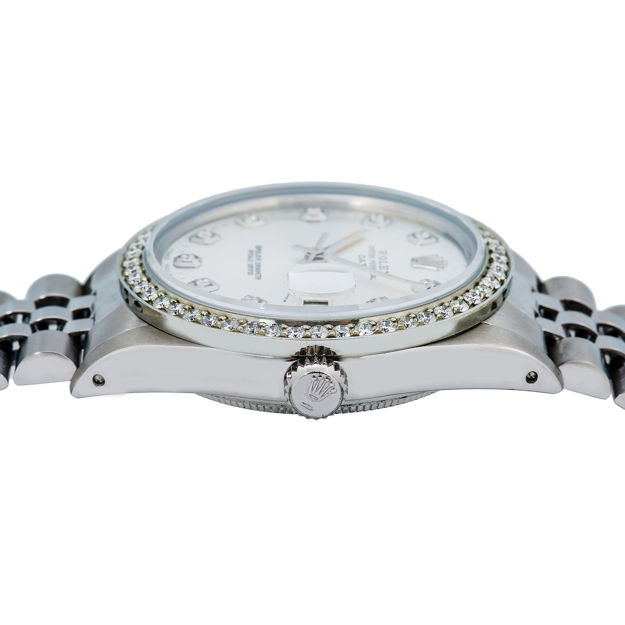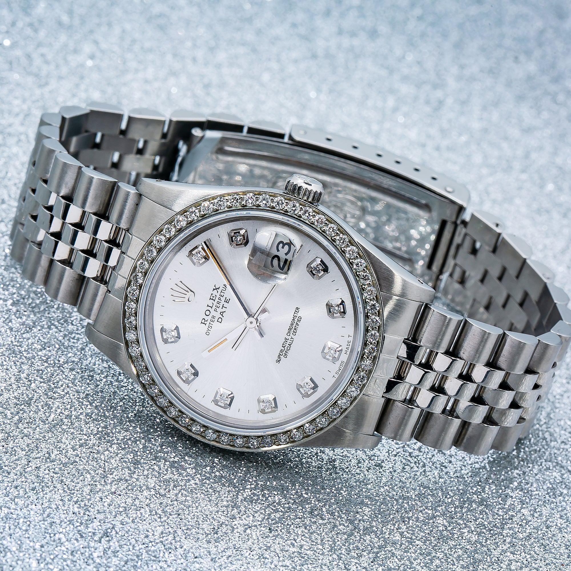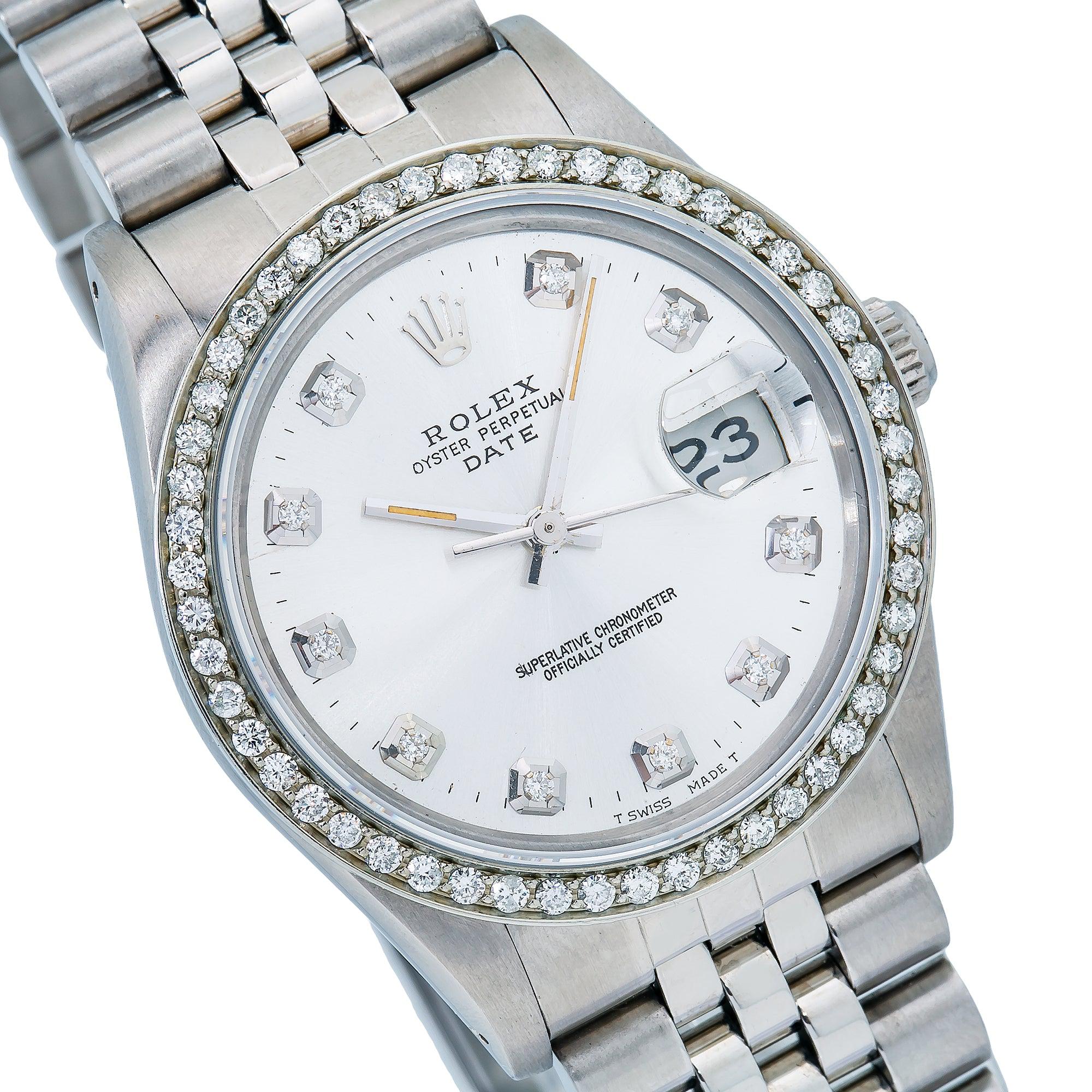 Rolex Date 34MM 15200 Silver Diamond Dial Diamond Bezel Stainless Steel Jubilee Bracelet 1.2ct