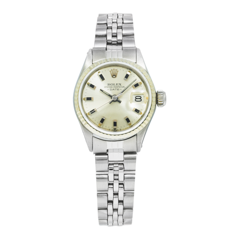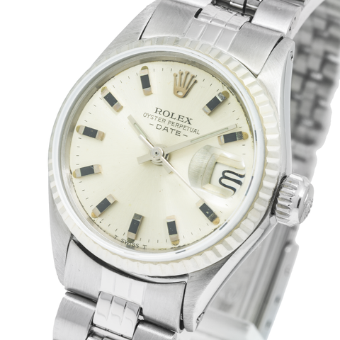 Rolex Date 26MM 6924 Silver Dial Fluted Bezel Stainless Steel Jubilee Bracelet