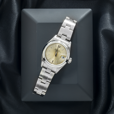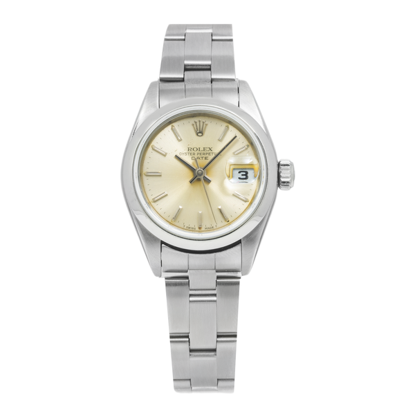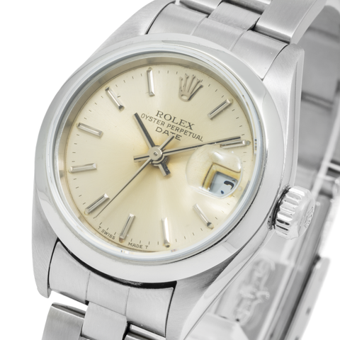 Rolex Date 26MM 79160 Champagne Dial Smooth Bezel Stainless Steel Oyster Bracelet