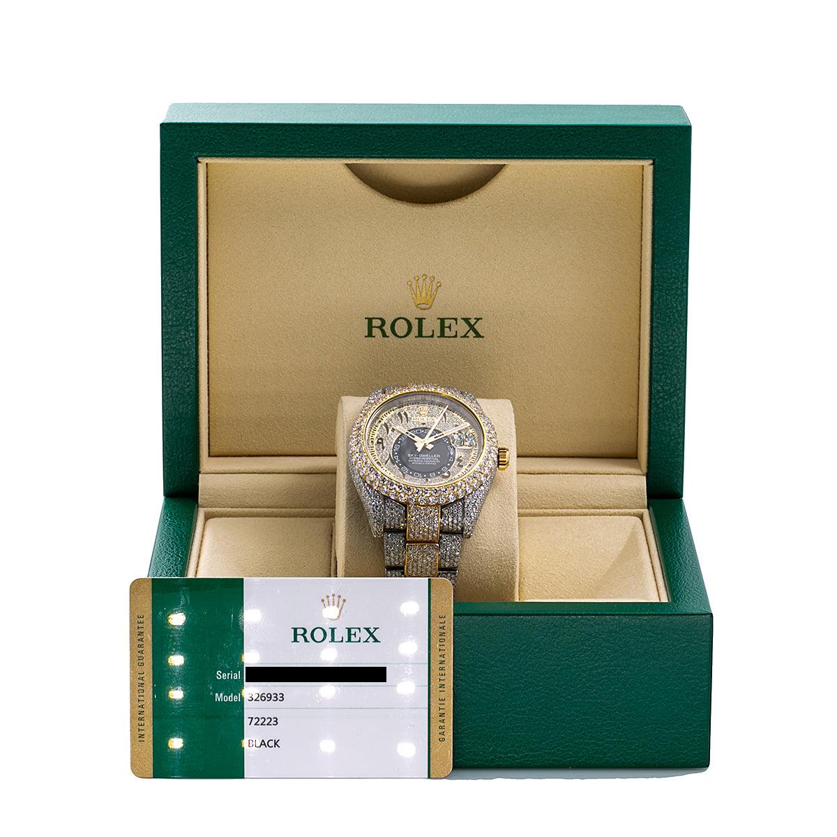 Rolex Sky-Dweller 42MM 326933 Diamond Paved Eastern Arabic Dial Diamond Bezel Two Tone Yellow Gold Full Diamond Oyster Bracelet 25.75ct
