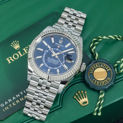 Rolex Sky-Dweller 42MM 336934 Blue Dial Fluted Bezel Stainless Steel Jubilee Bracelet