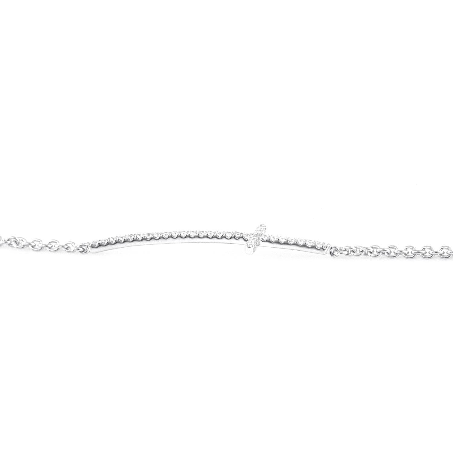 18K White Gold Diamond Side Ways Cross Bracelet With Round Diamonds 0.20CT