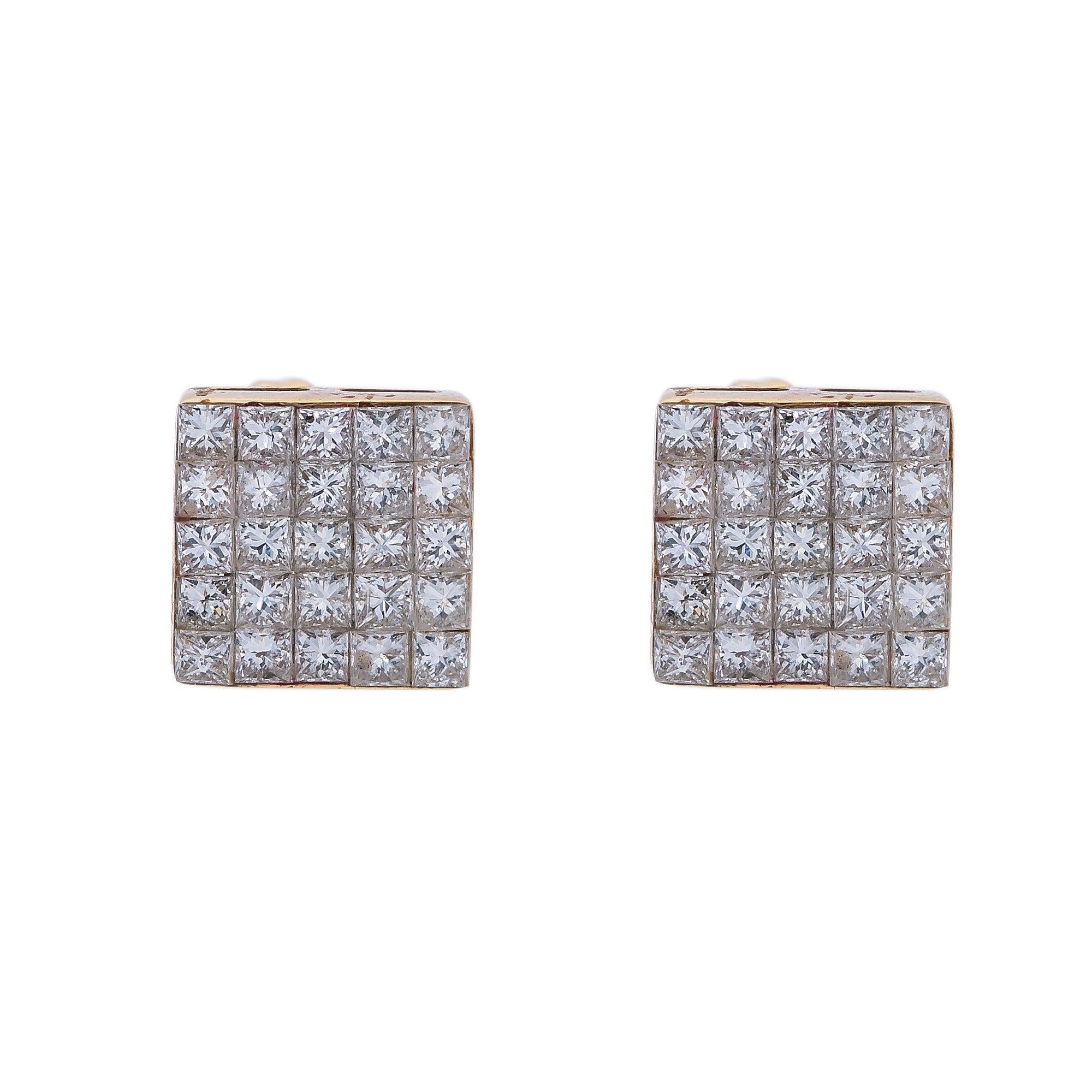 Small 14K Yellow Gold Unisex Square Shaped Diamond Earrings
