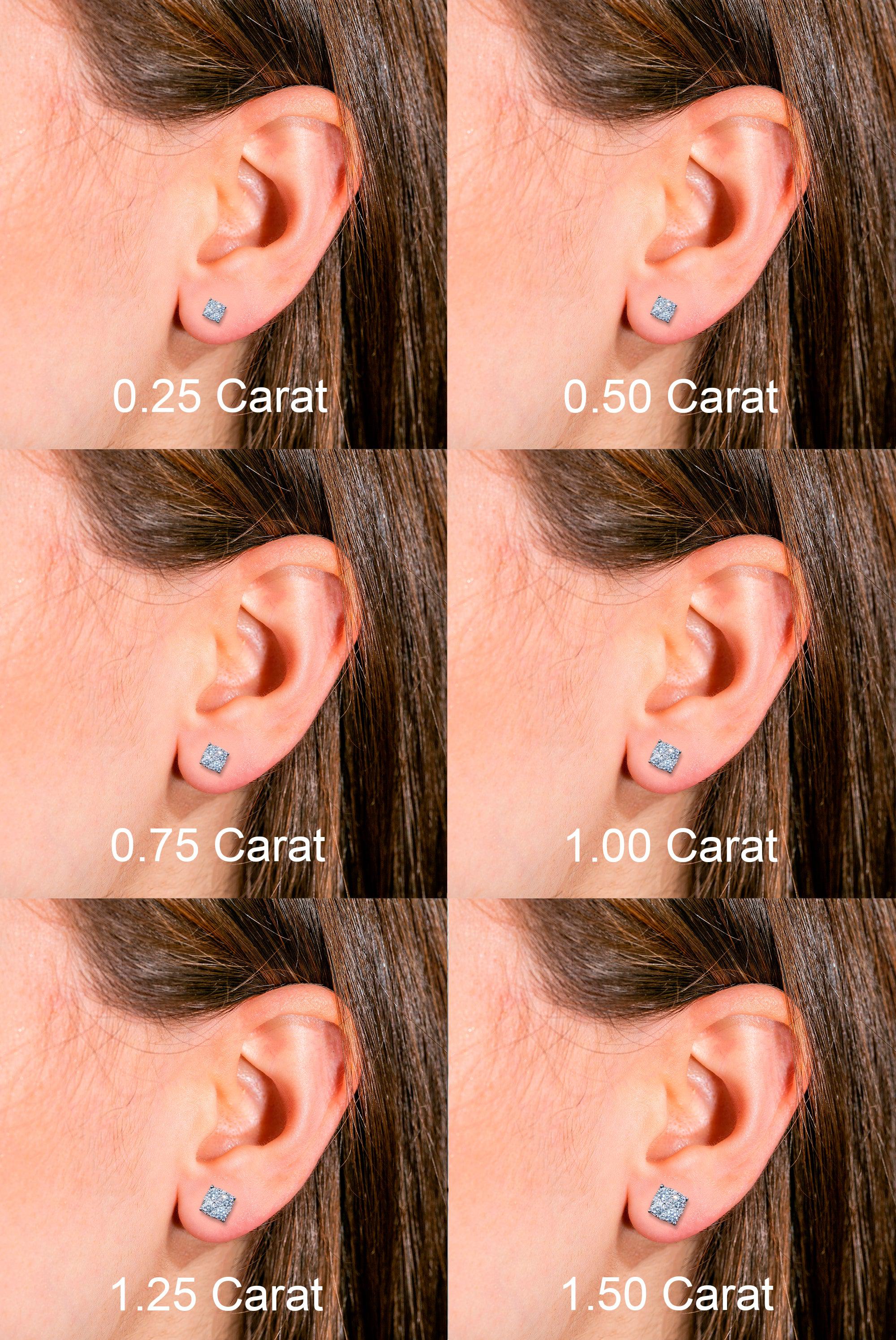 Small 14K White Gold Unisex Square Shaped Diamond Earrings