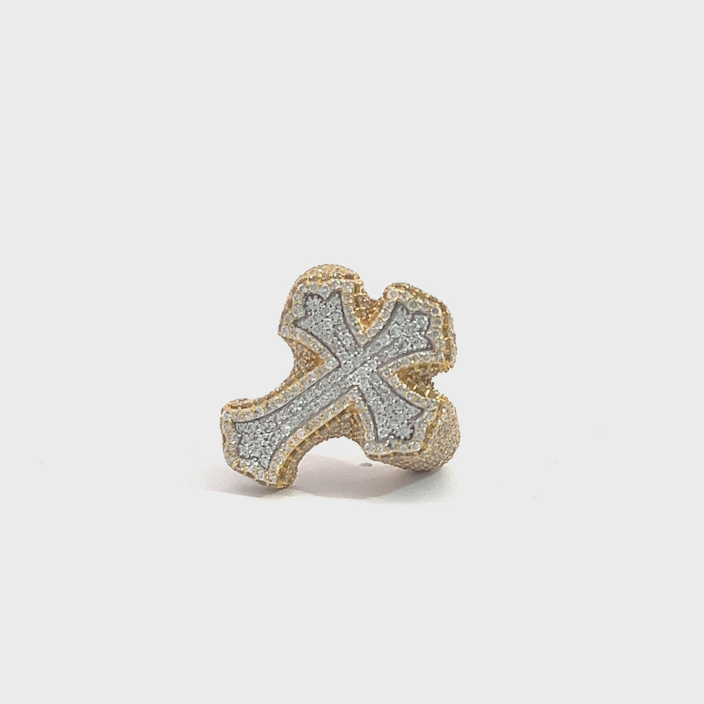 10K TWO-TONE GOLD DIAMOND CROSS RING 3.66 CT