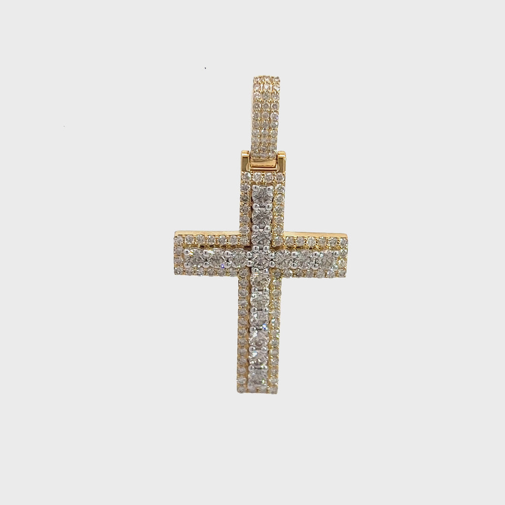 10K GOLD ROUND DIAMOND CROSS PENDANT 2.89 CT