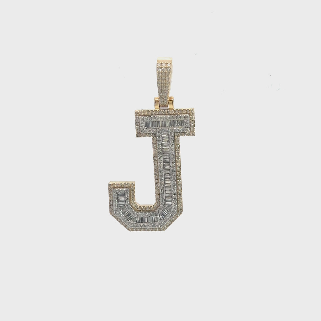 10K TWO-TONE GOLD ROUND AND BAGUETTE DIAMOND LETTER "J" PENDANT 1.22 CT