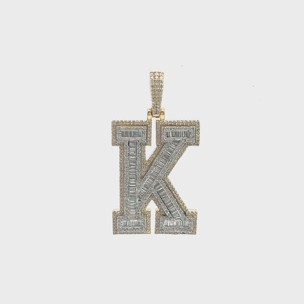 10K TWO-TONE GOLD ROUND AND BAGUETTE DIAMOND LETTER "K" PENDANT 1.77 CT