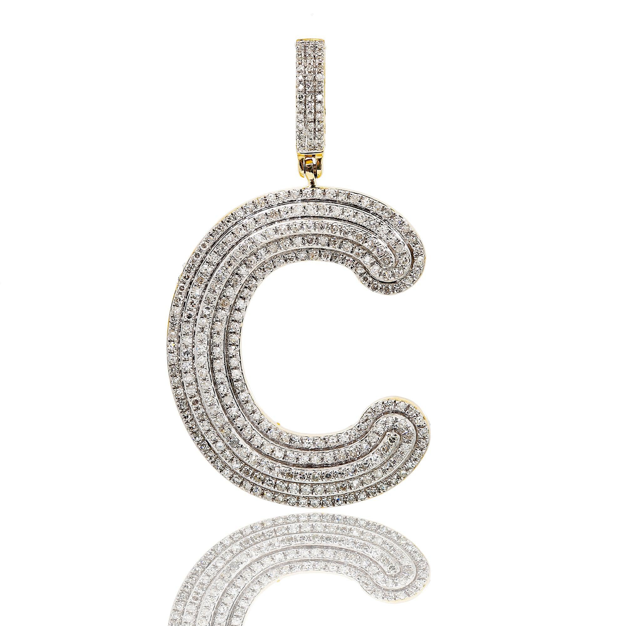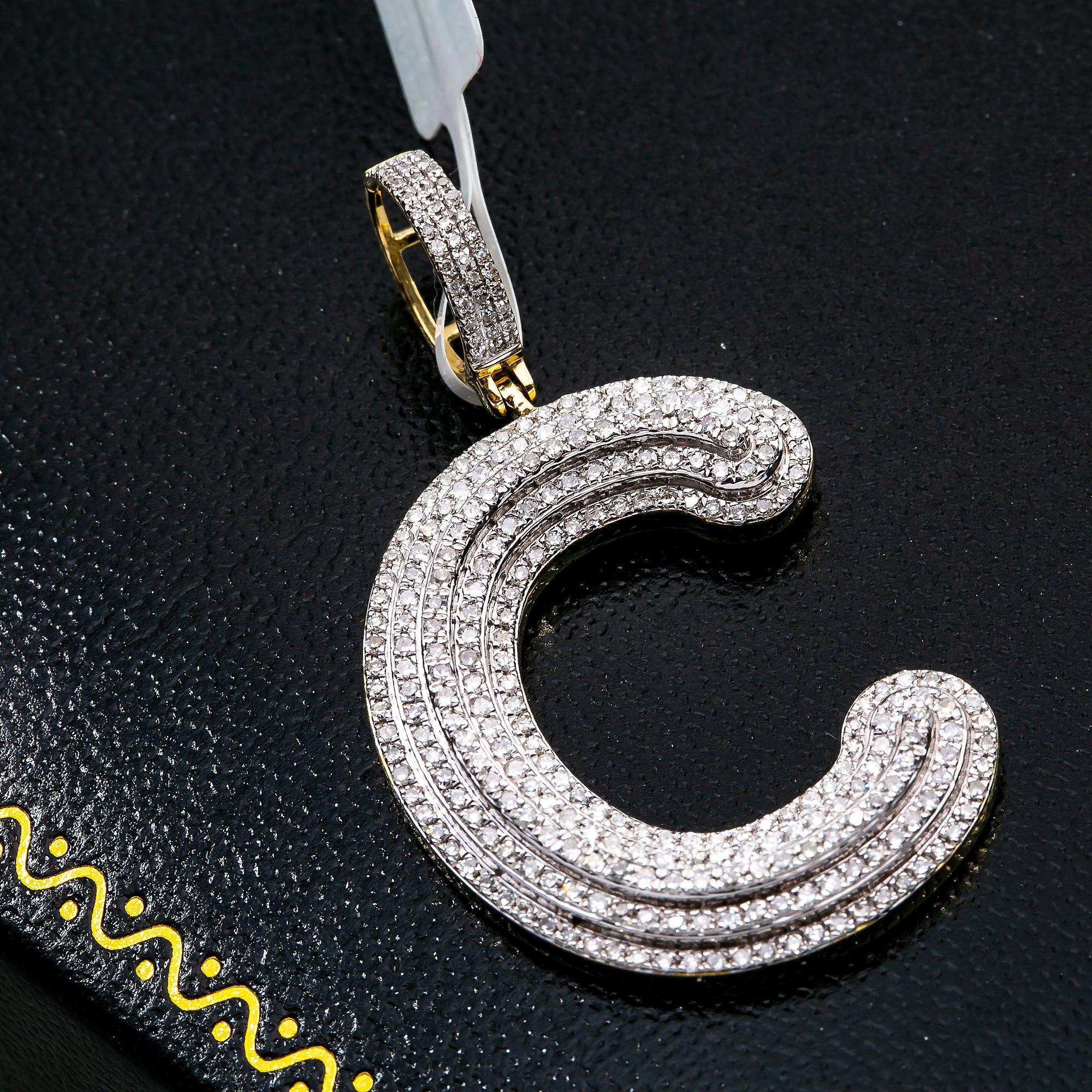Unisex 10K White Gold Initial C Pendant with .76 CT Diamonds