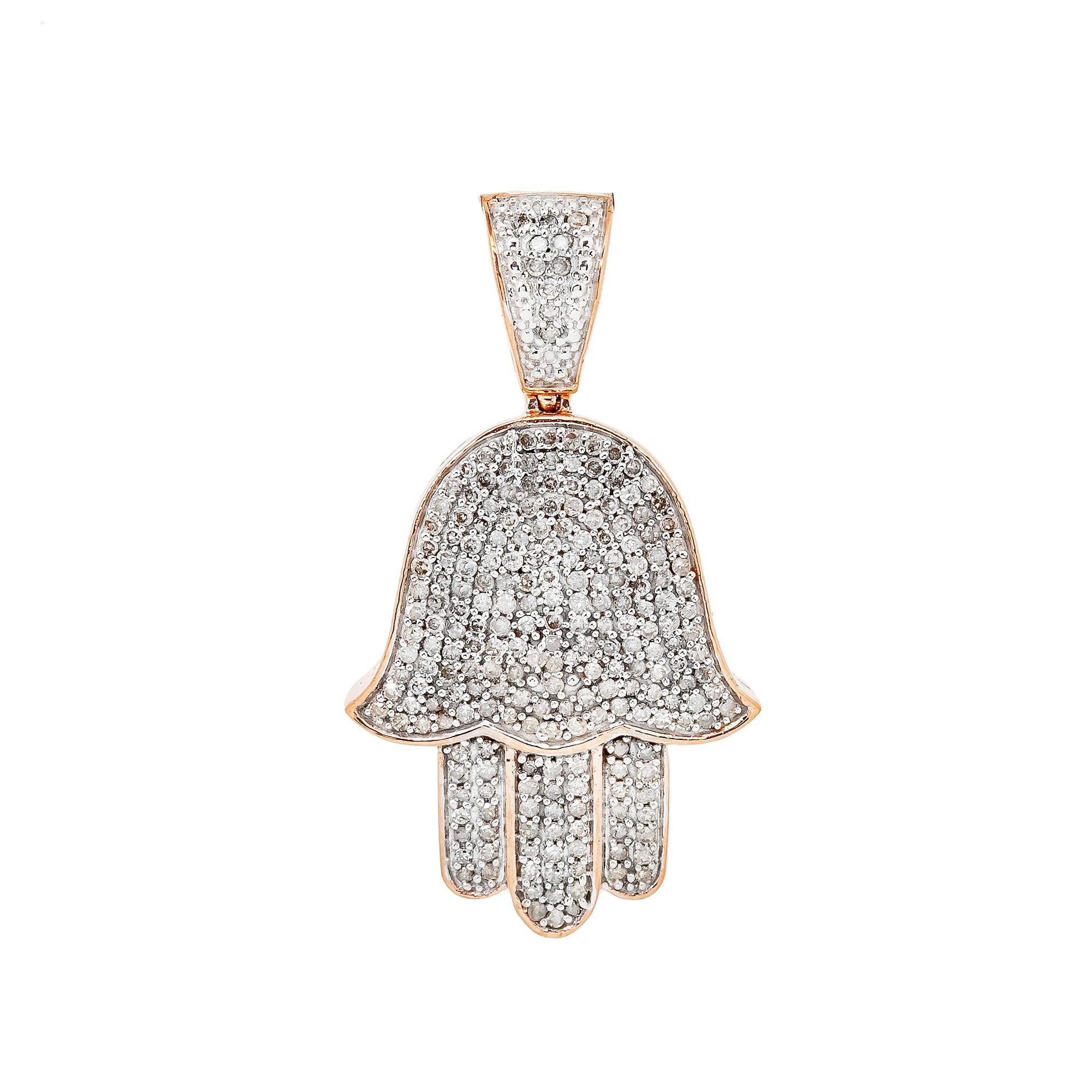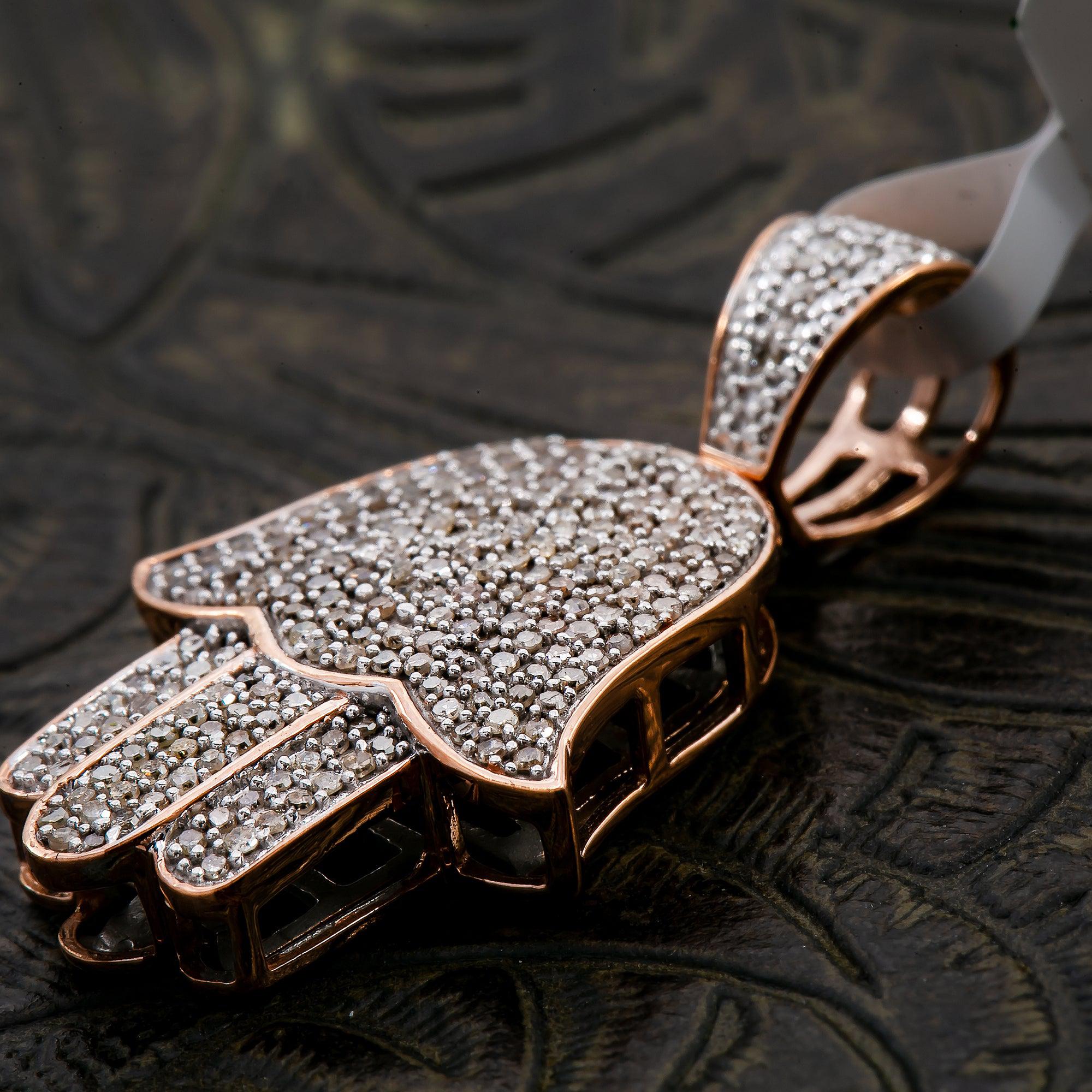 Unisex 14K Rose Gold Hamsa Pendant with 0.97 CT Diamonds