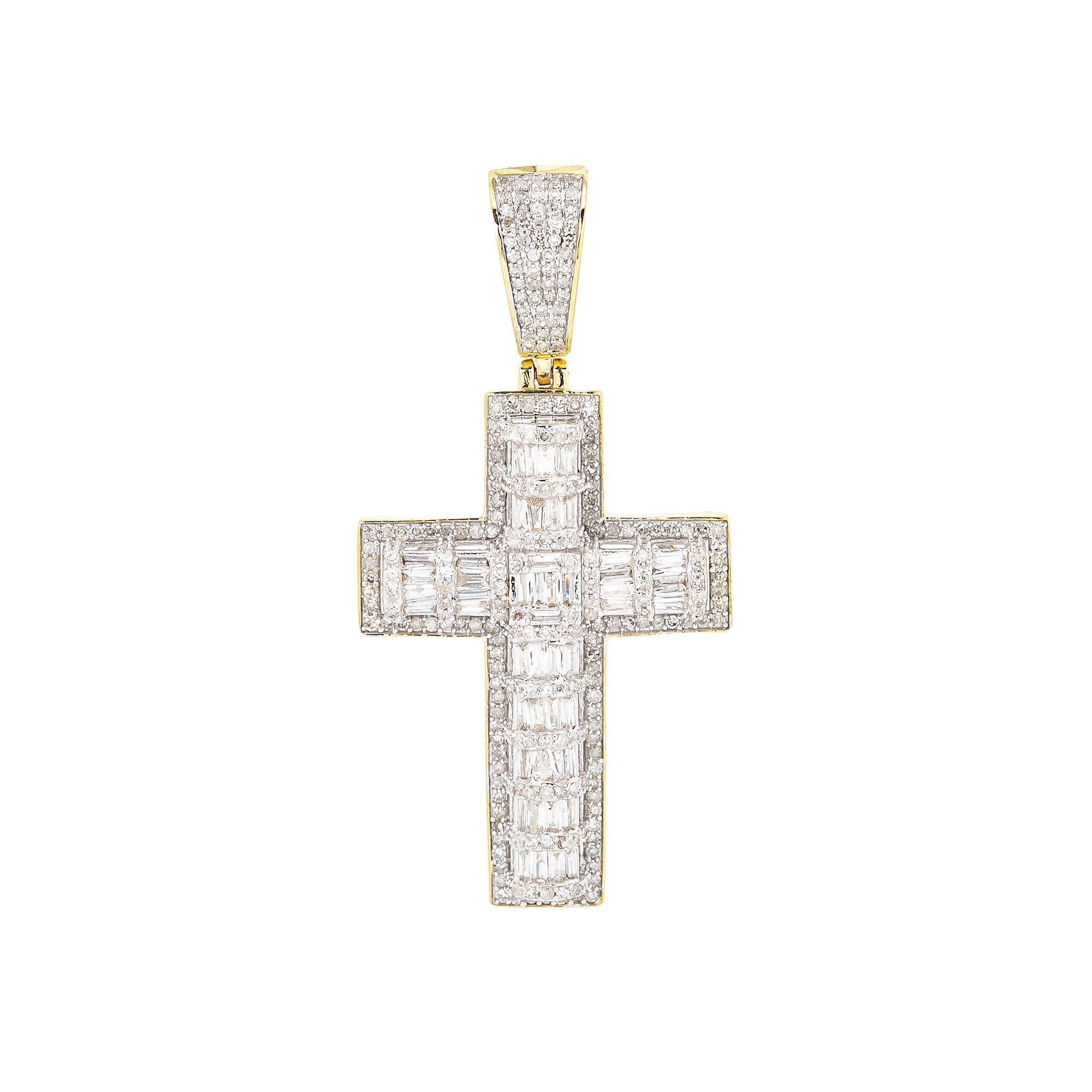 Unisex 14K Yellow Gold Cross Pendant with 1.43 CT Diamonds