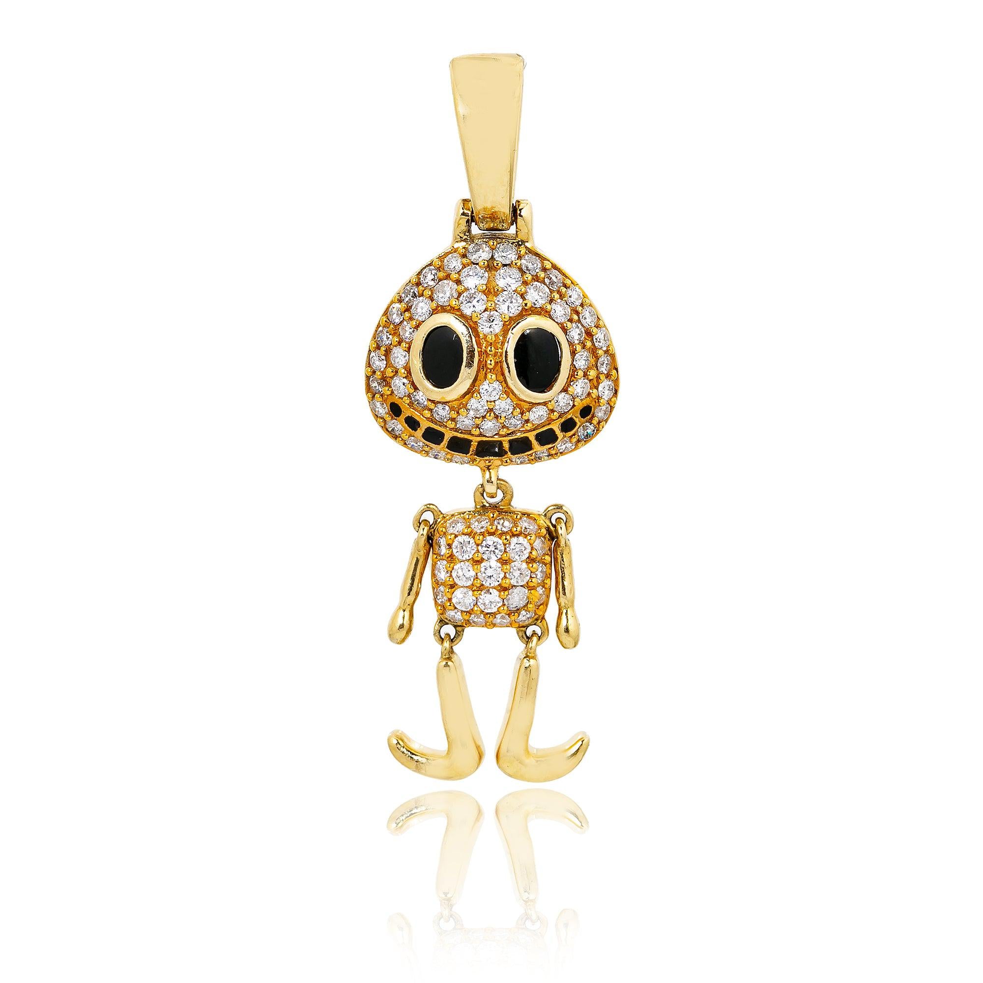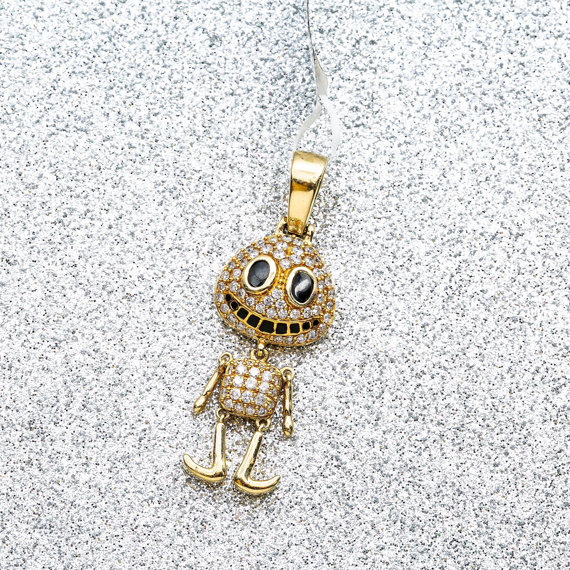 Unisex 14K Yellow Gold Emoji Pendant with 1.26 CT Diamonds