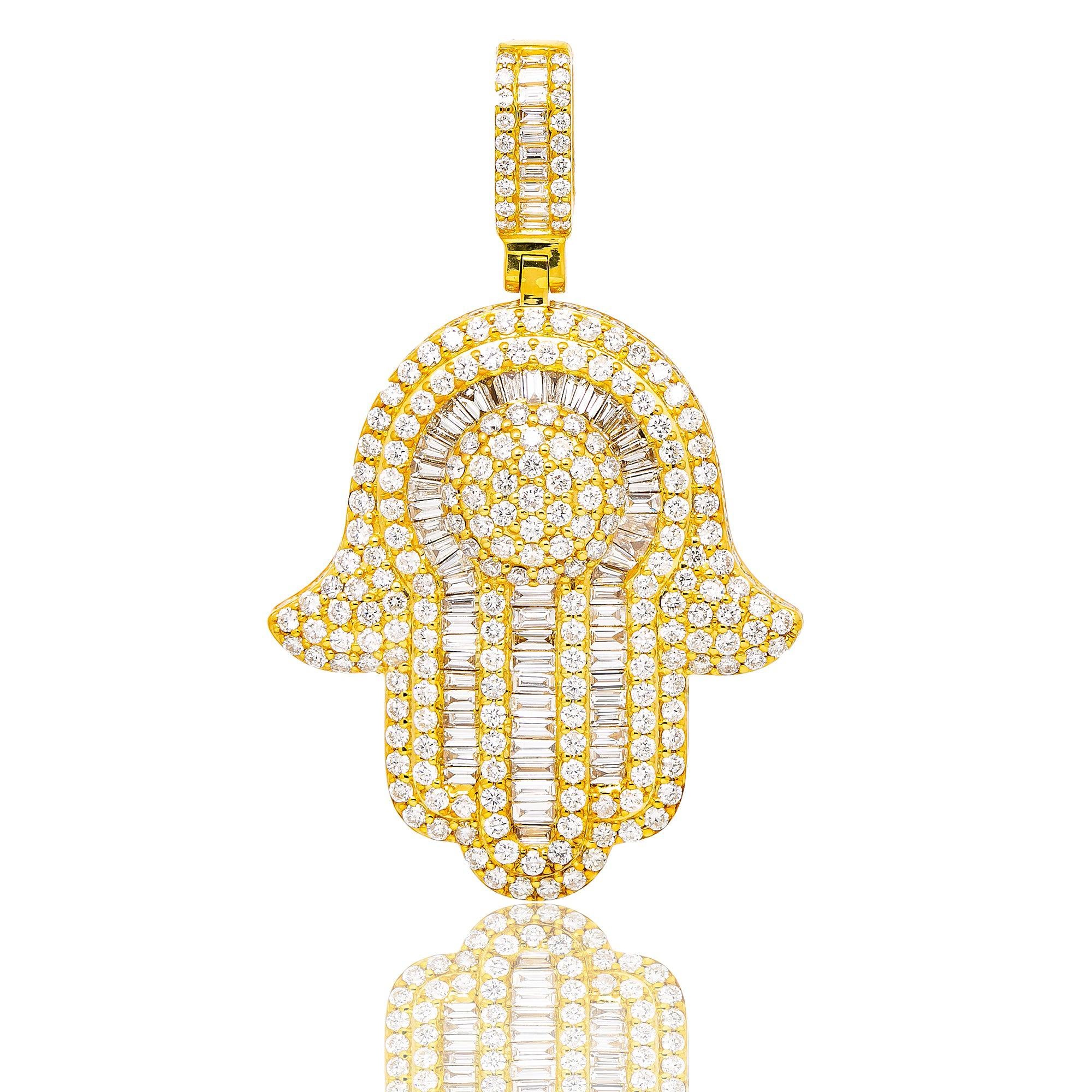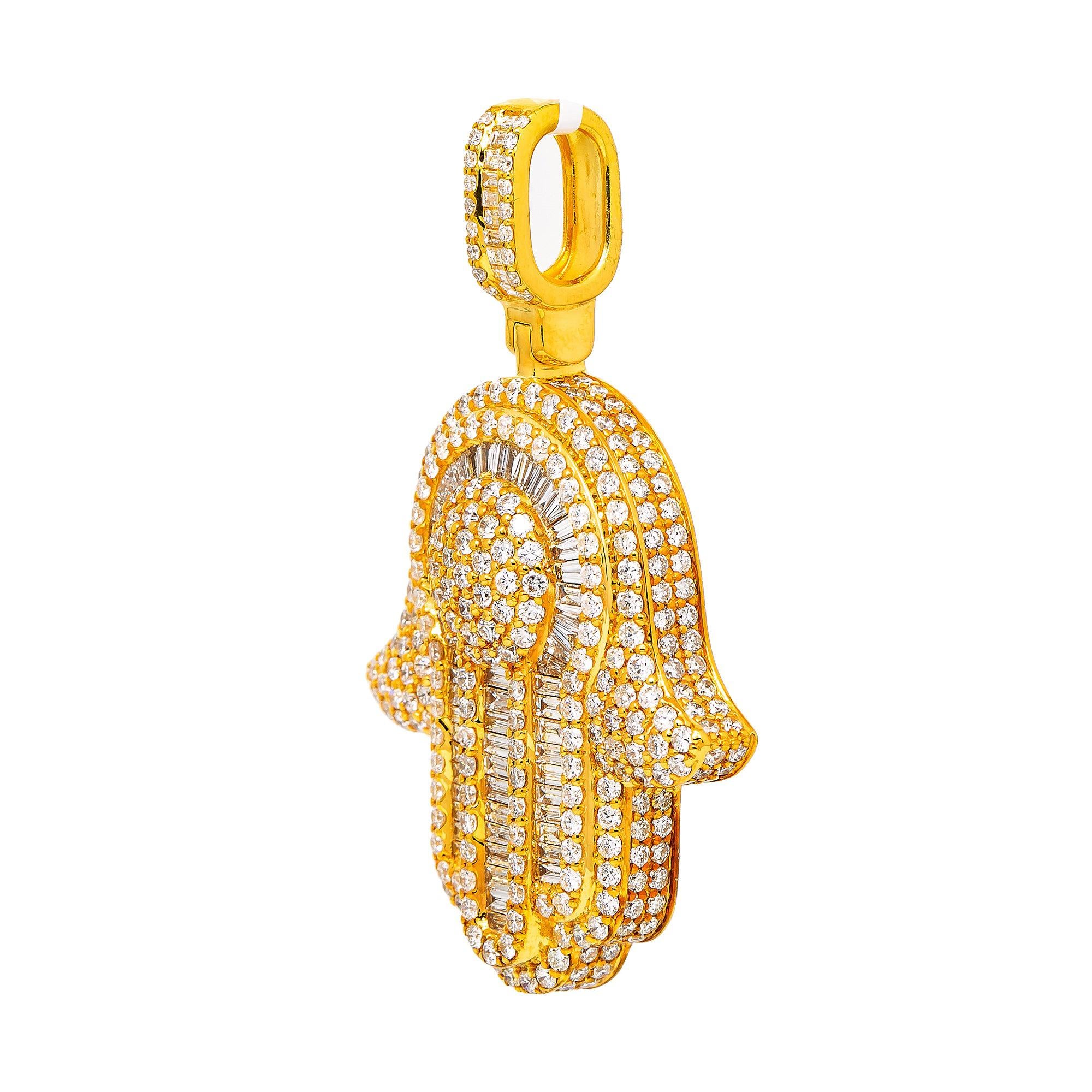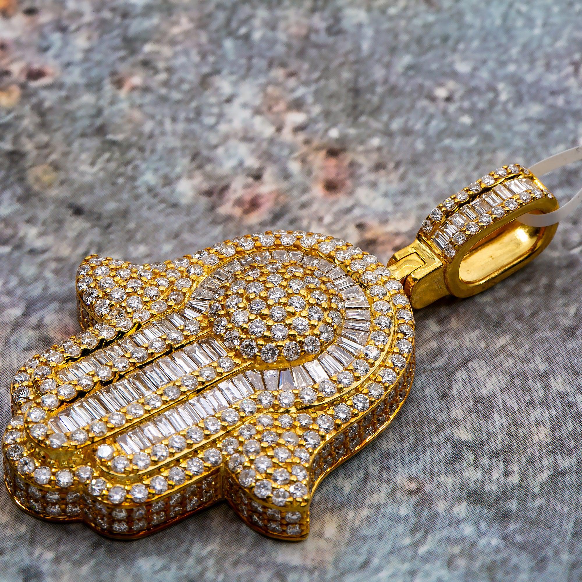 14K Yellow Gold Hamsa Pendant with 5.92 CT Diamonds