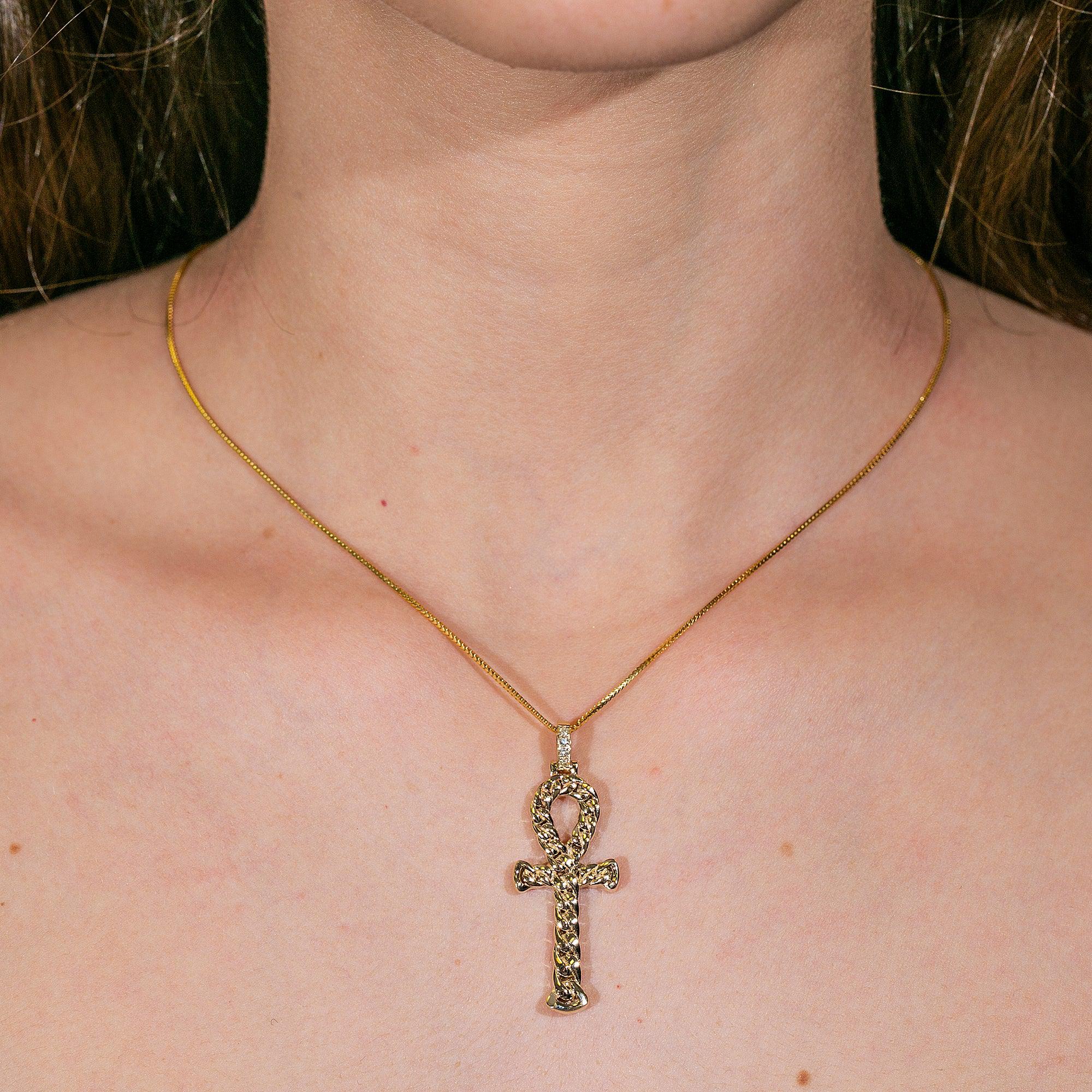 Unisex 14K Yellow Gold Pendant with 0.05 CT Diamonds