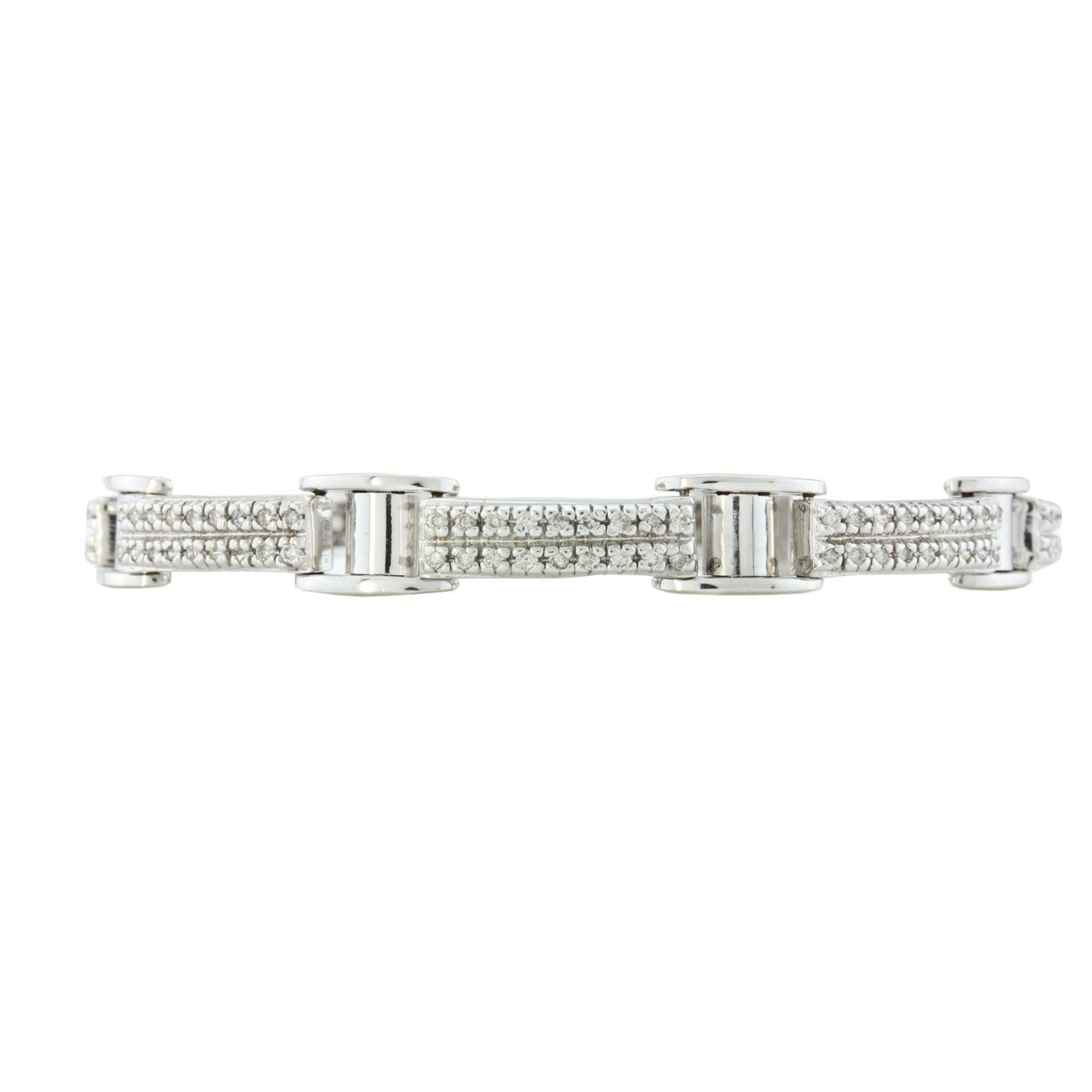 Men's White Gold Bracelet with Round Diamonds. 14K white gold set with brilliant round cut diamonds in a pave setting. Total carat weight is 1.50CT. Bracelet weighs 26 grams.