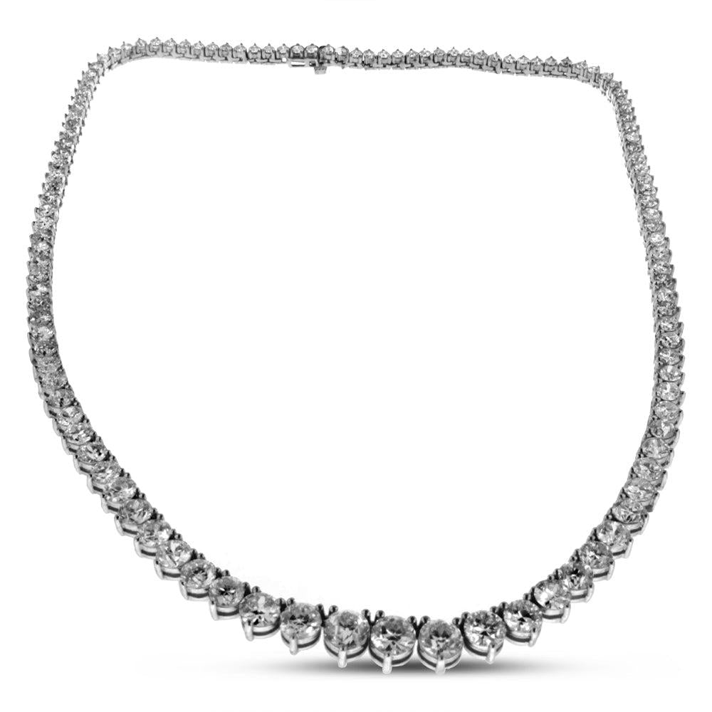 18K White Gold Graduated Diamond Tennis Necklace 30.00CT