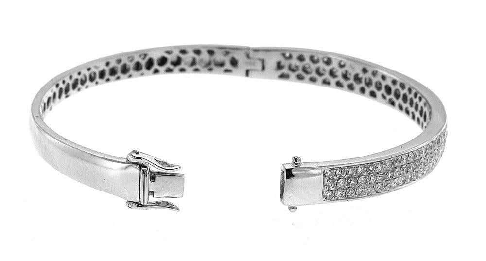 14K White Gold Three Row Diamond Bangle With Round Cut Diamonds 3.00CT