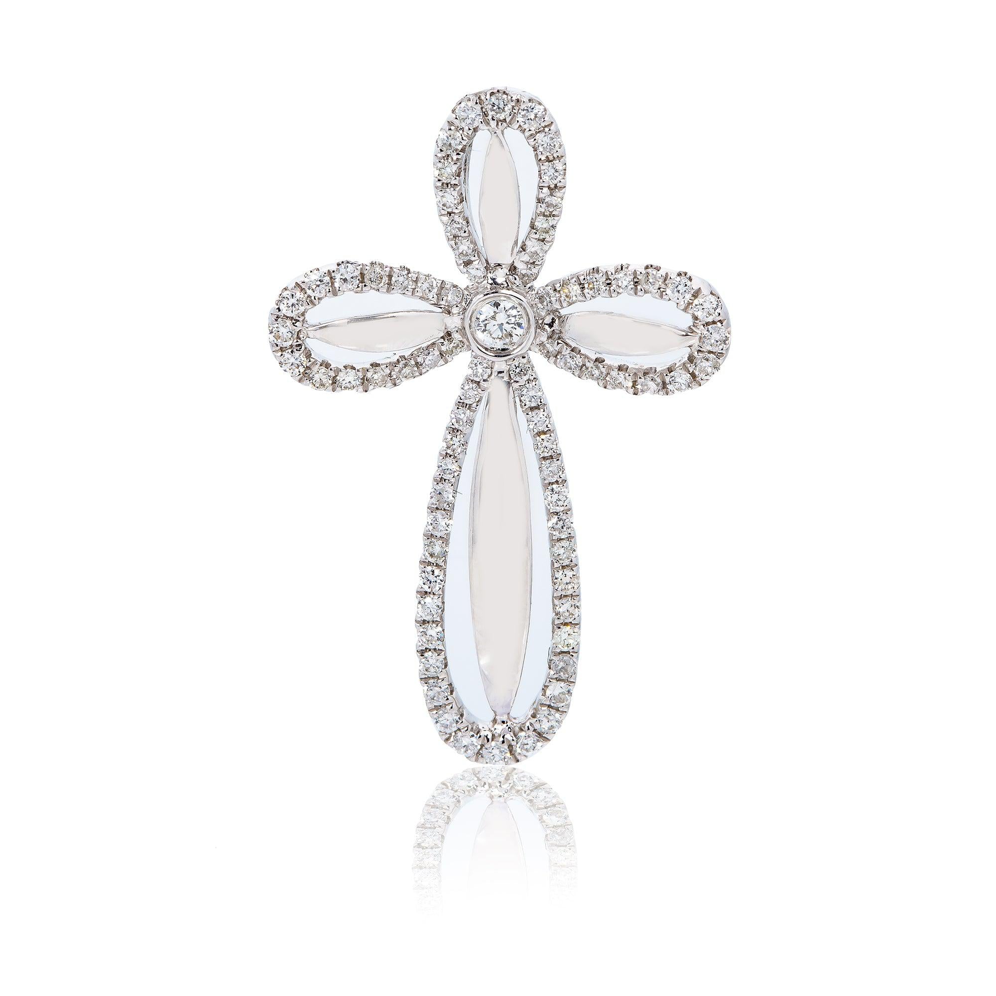 Women's 18K White Gold Cross Pendant with 0.42 CT Diamonds
